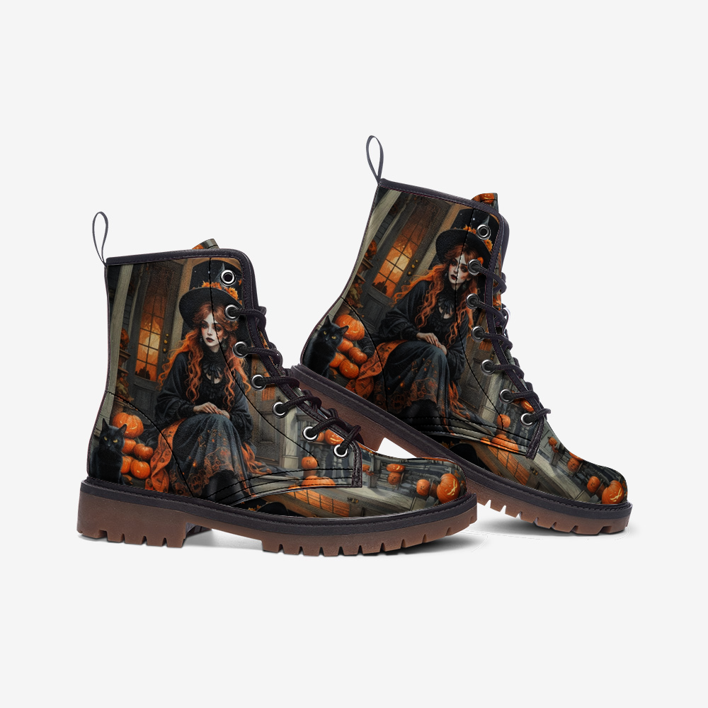 These leather boots feature a youthful, playful witch design, perfect for Halloween enthusiasts and hippies. Comfortable and durable, they are ideal for everyday wear or adding a magical touch to your Halloween costume. Bring out your inner witch and free spirit this spooky season!
