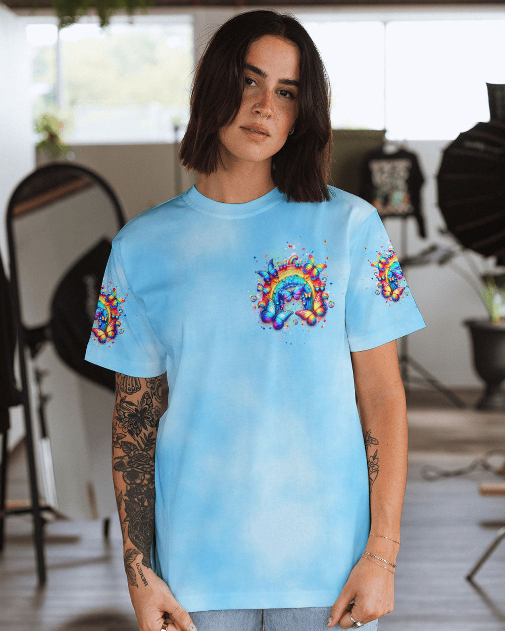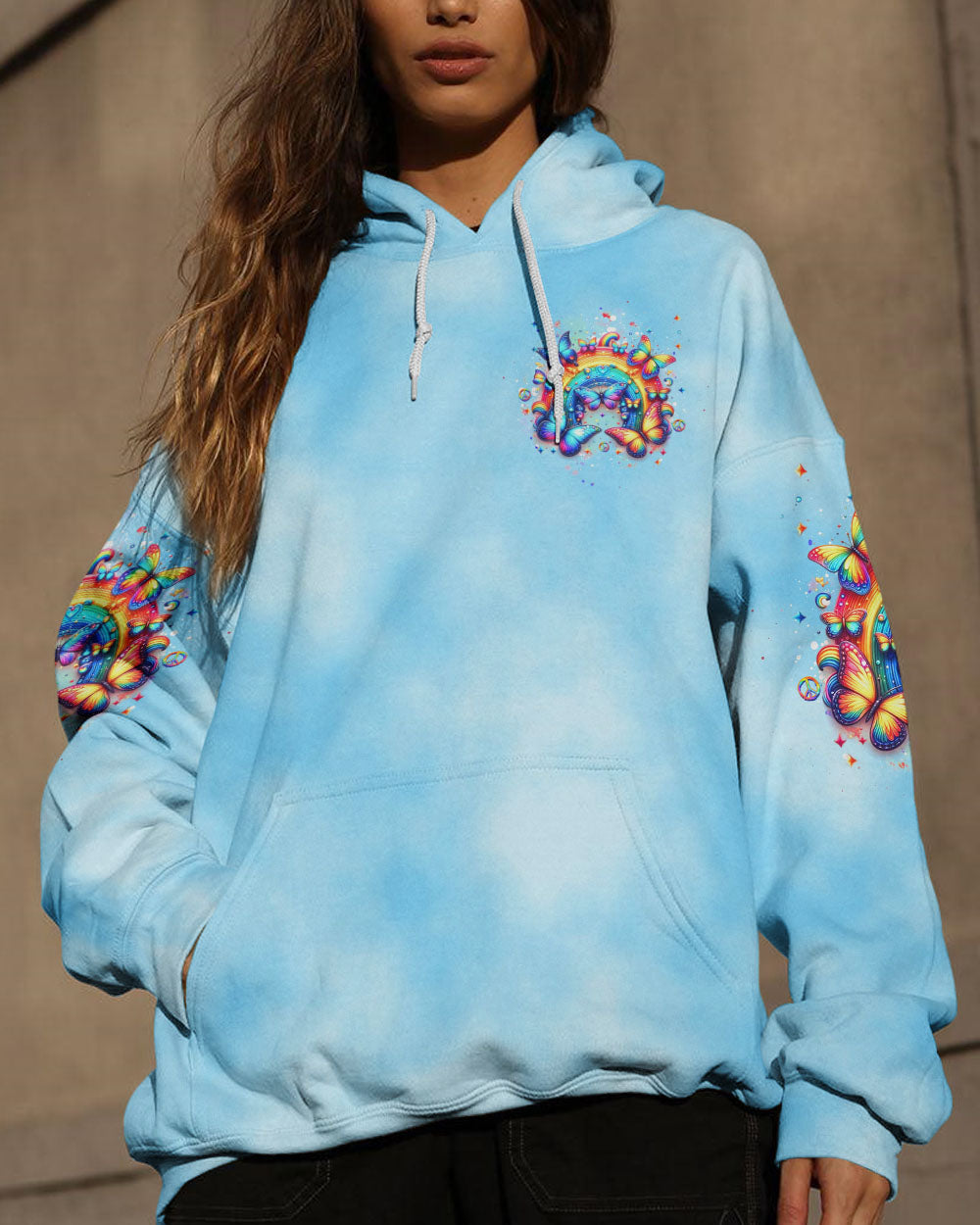 The “Be a Rainbow in Someone Else’s Cloud for Hippie” all-over print features a vibrant design featuring a colorful rainbow and an uplifting message about spreading positivity and kindness. Perfect for those who believe in the power of love and compassion, this print encourages you to brighten someone’s day. Made from a soft, breathable fabric, it’s perfect for everyday wear. The playful imagery adds a playful touch to your wardrobe, reminding you to always bring light and happiness to others.
