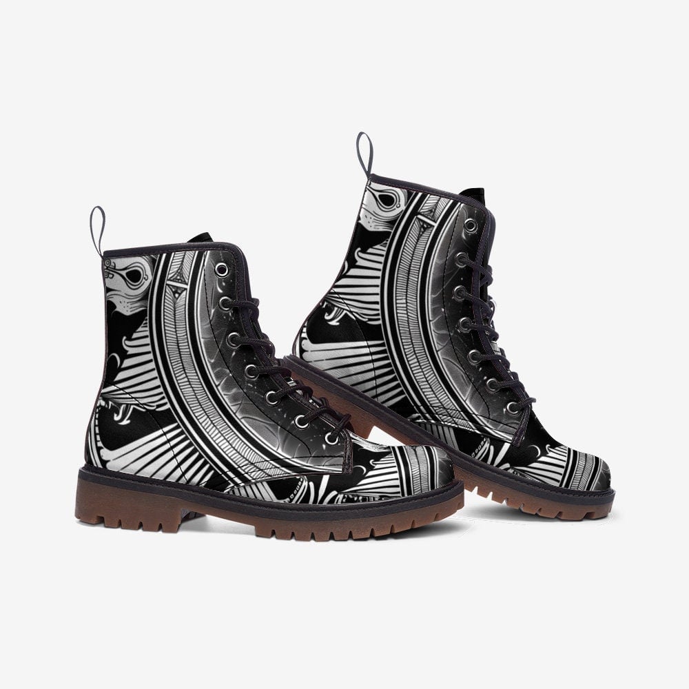 Hippie Art Zone - Black And White Art Nouveau Vegan Leather Boots