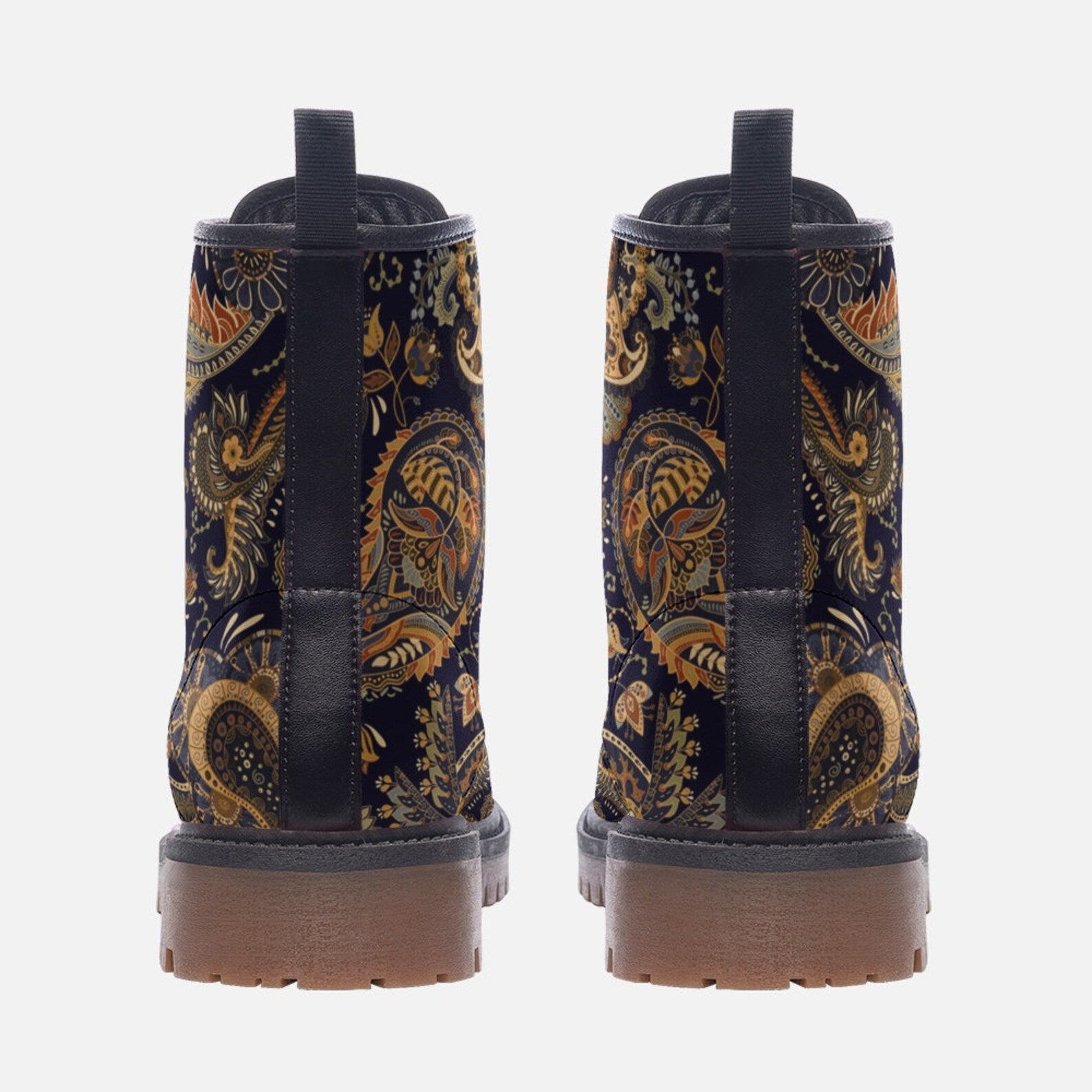 Hippie Art Zone - Dark Blue Floral Vegan Boots.