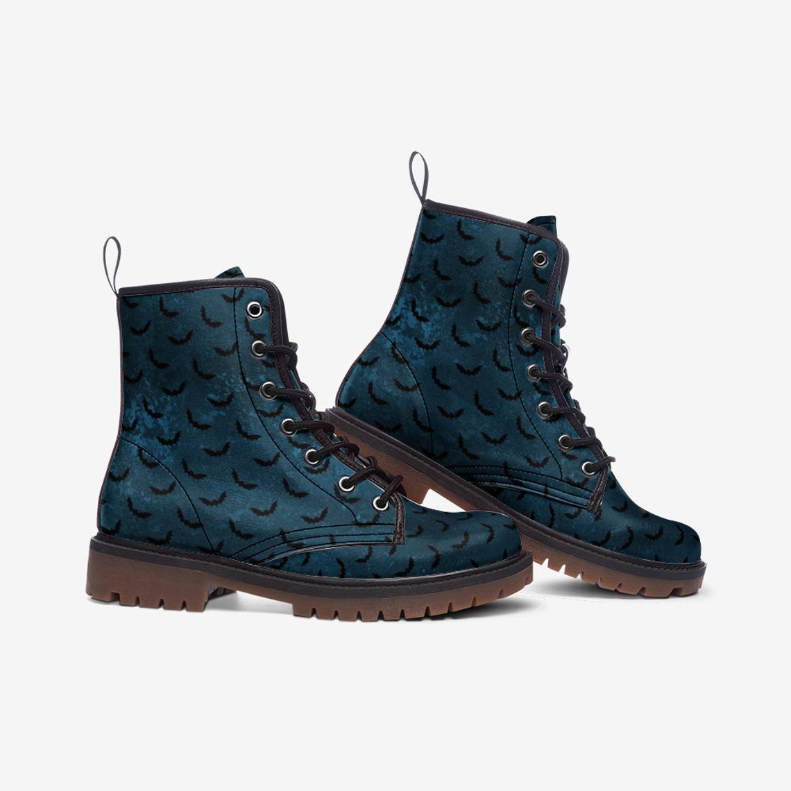 Hippie Art Zone - Dark Teal Bats Combat Boots.