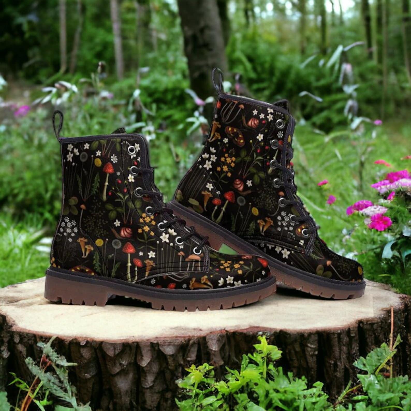 Hippie Art Zone - Faecore Mushroom Dark Forestcore Boots.