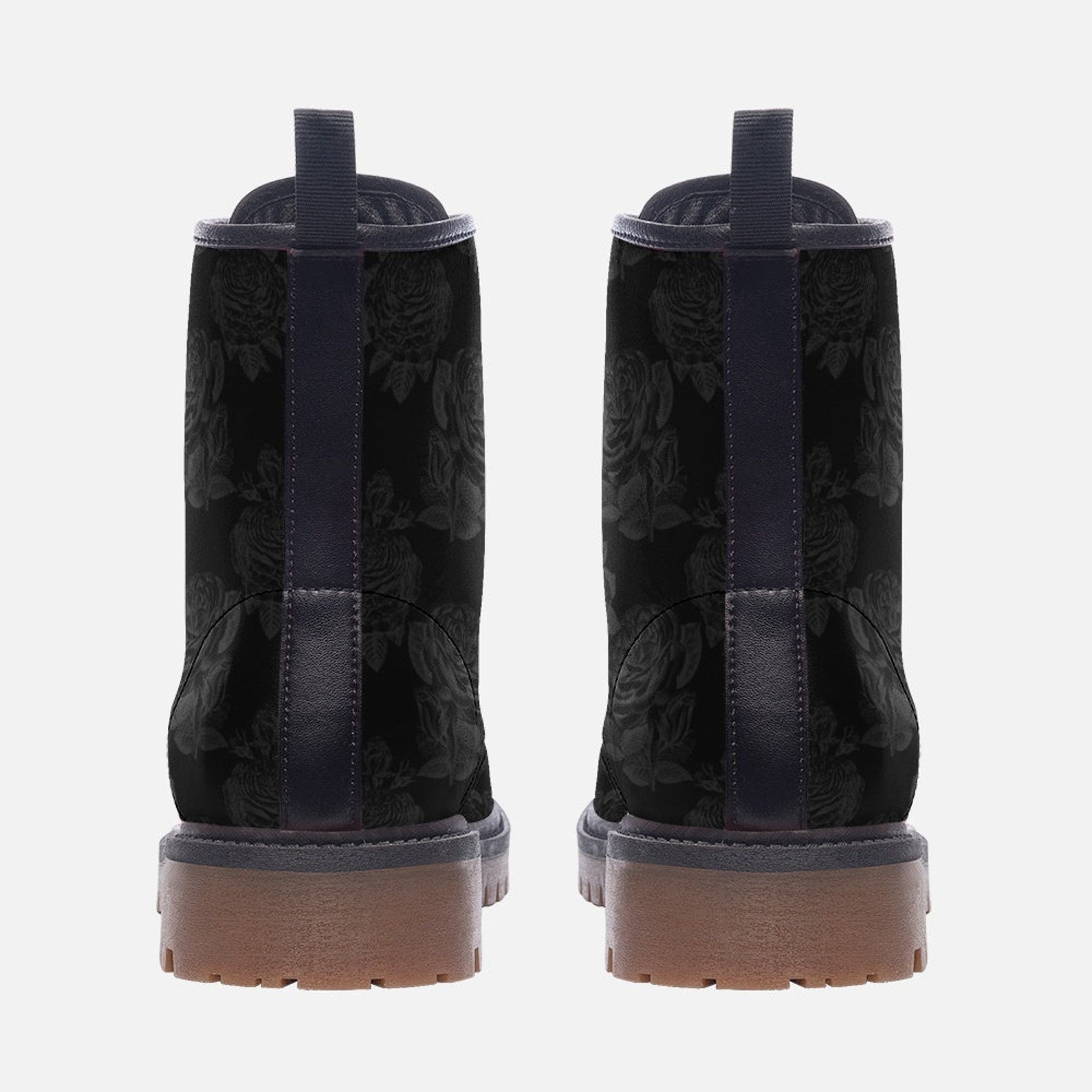 Hippie Art Zone - Gothic Black Roses Vegan Combat Boots.