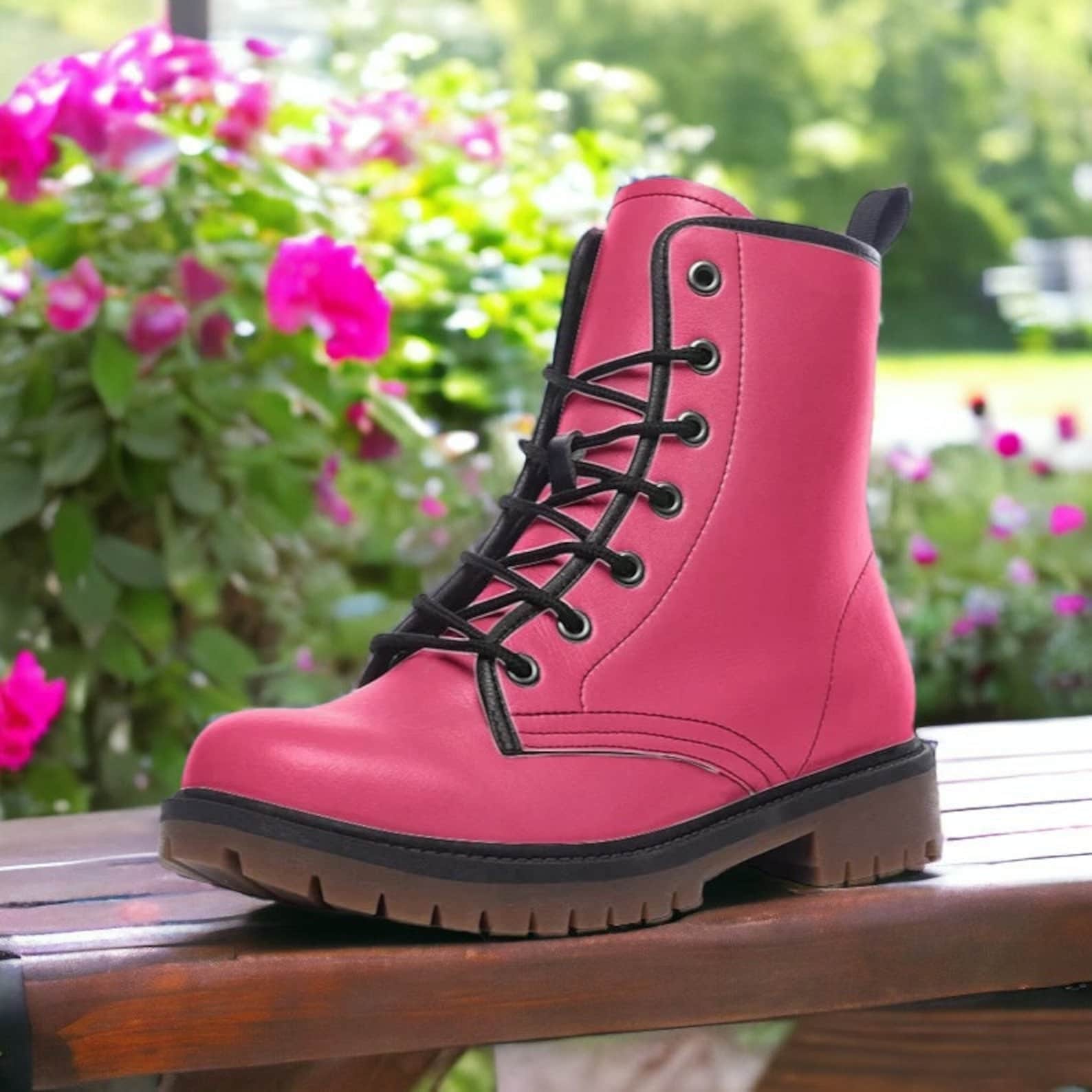 Hippie Art Zone - Hot Pink Vegan Combat Boots.