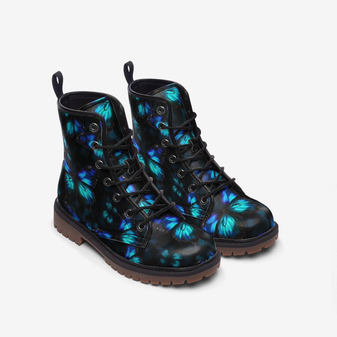 Hippie Art Zone - Morpho Butterfly Vegan Combat Boots.