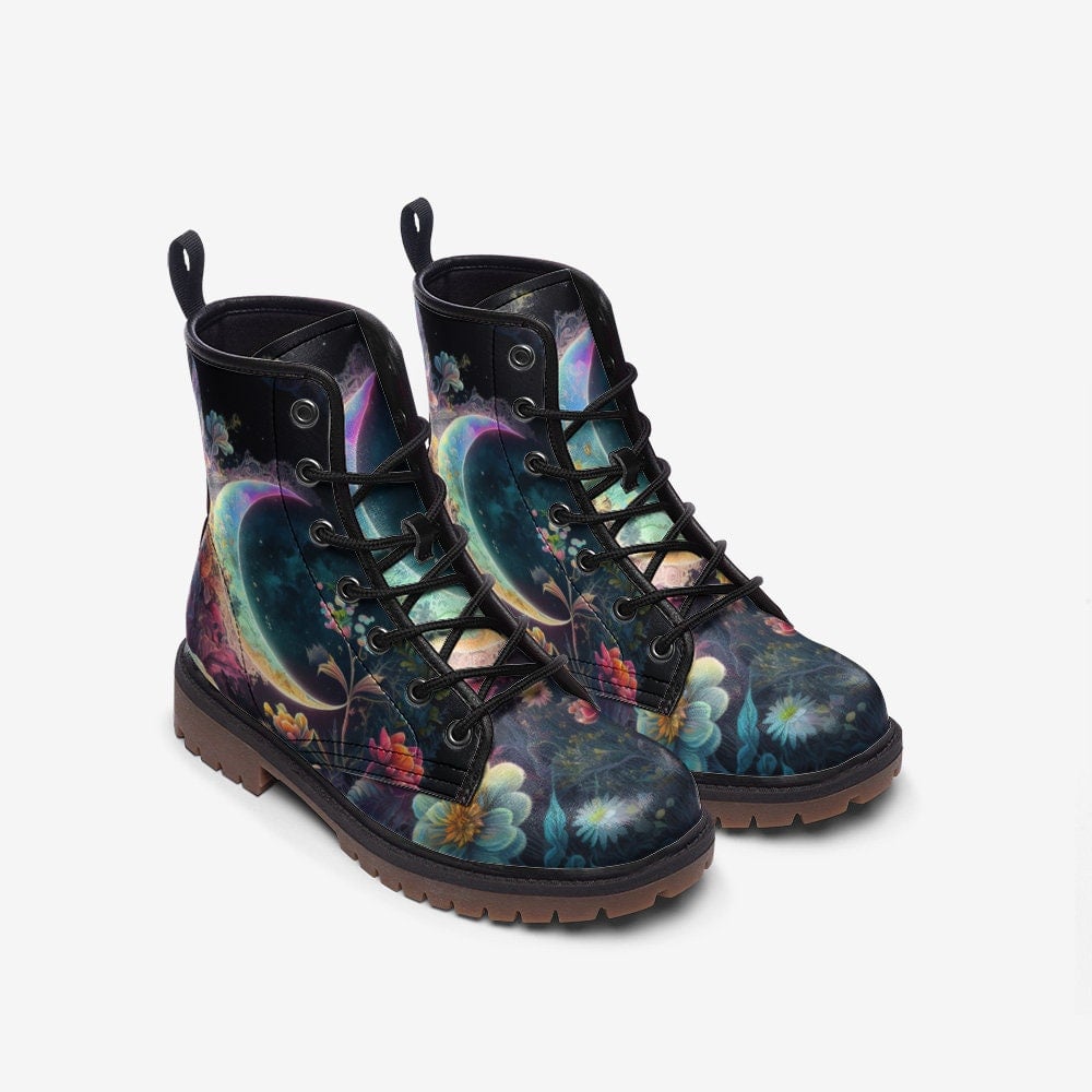 Hippie Art Zone - Mystic Fantasy Moon Combat Boots,
