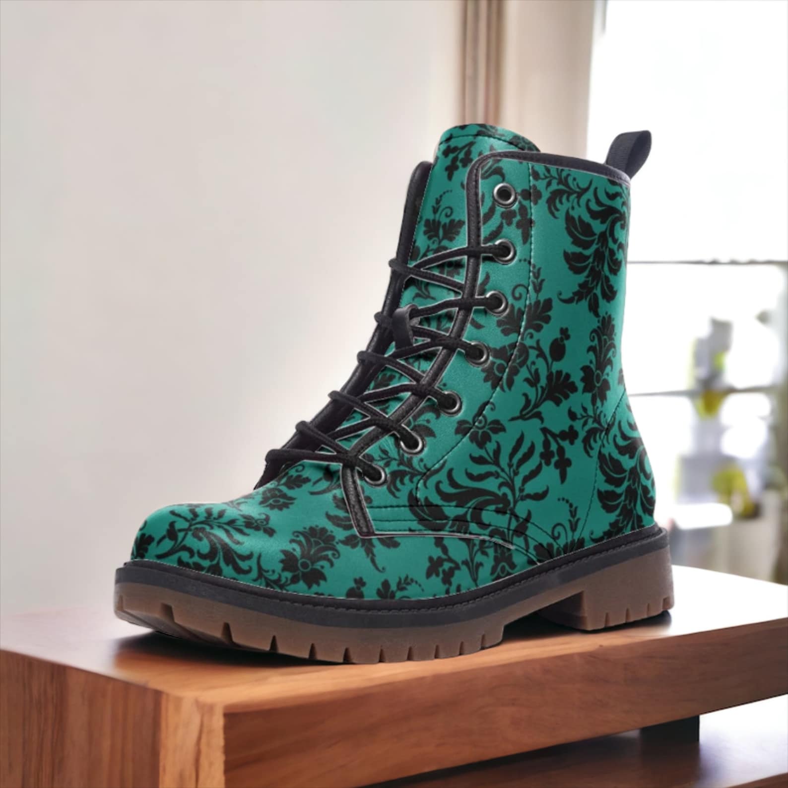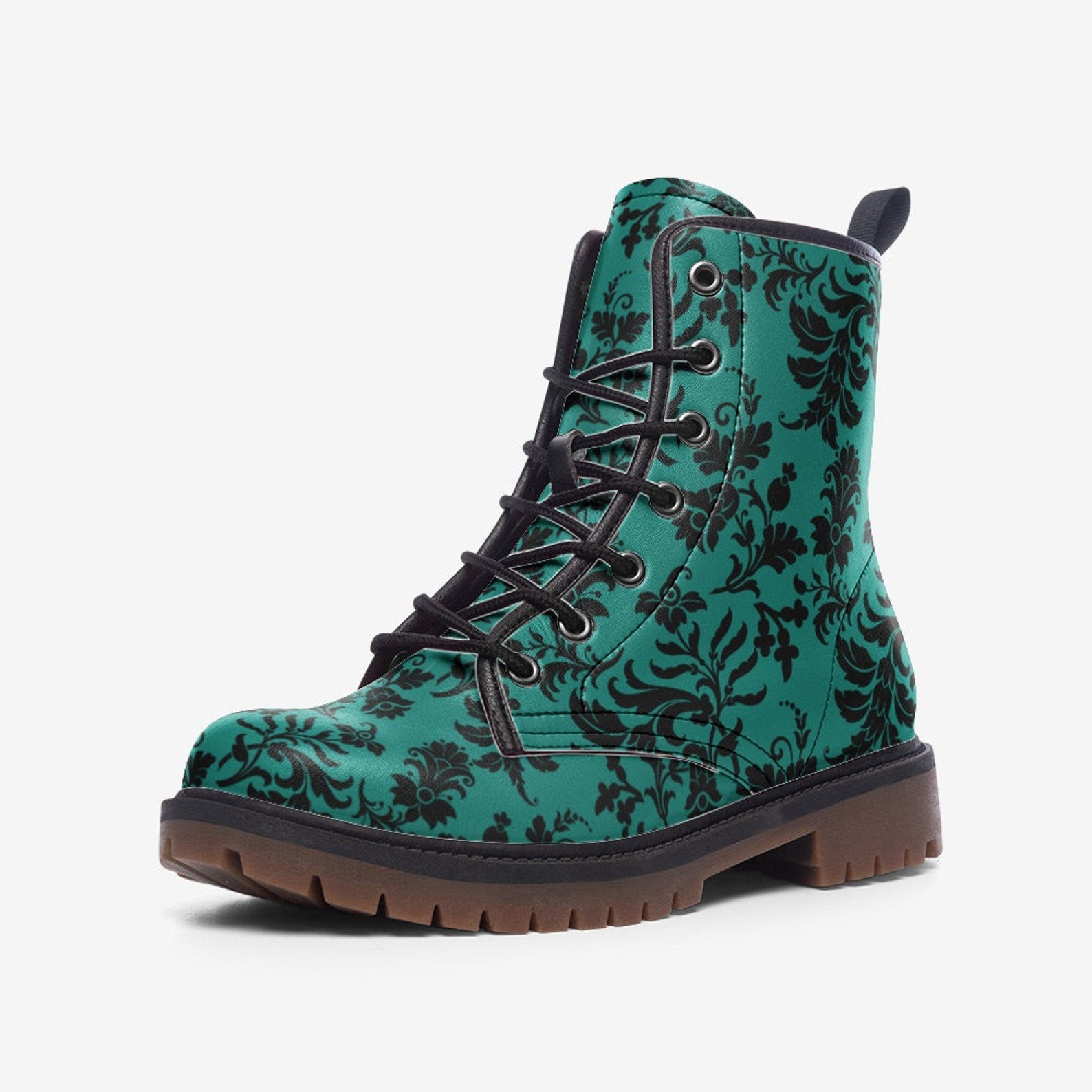 Step out in style with these hippieartzone Boots in a unique Teal Gothic design. These women's combat boots are perfect for any hippie fashionista looking to add a touch of edginess to their outfit. The teal color adds a pop of color while the gothic design adds a touch of mystery and elegance.