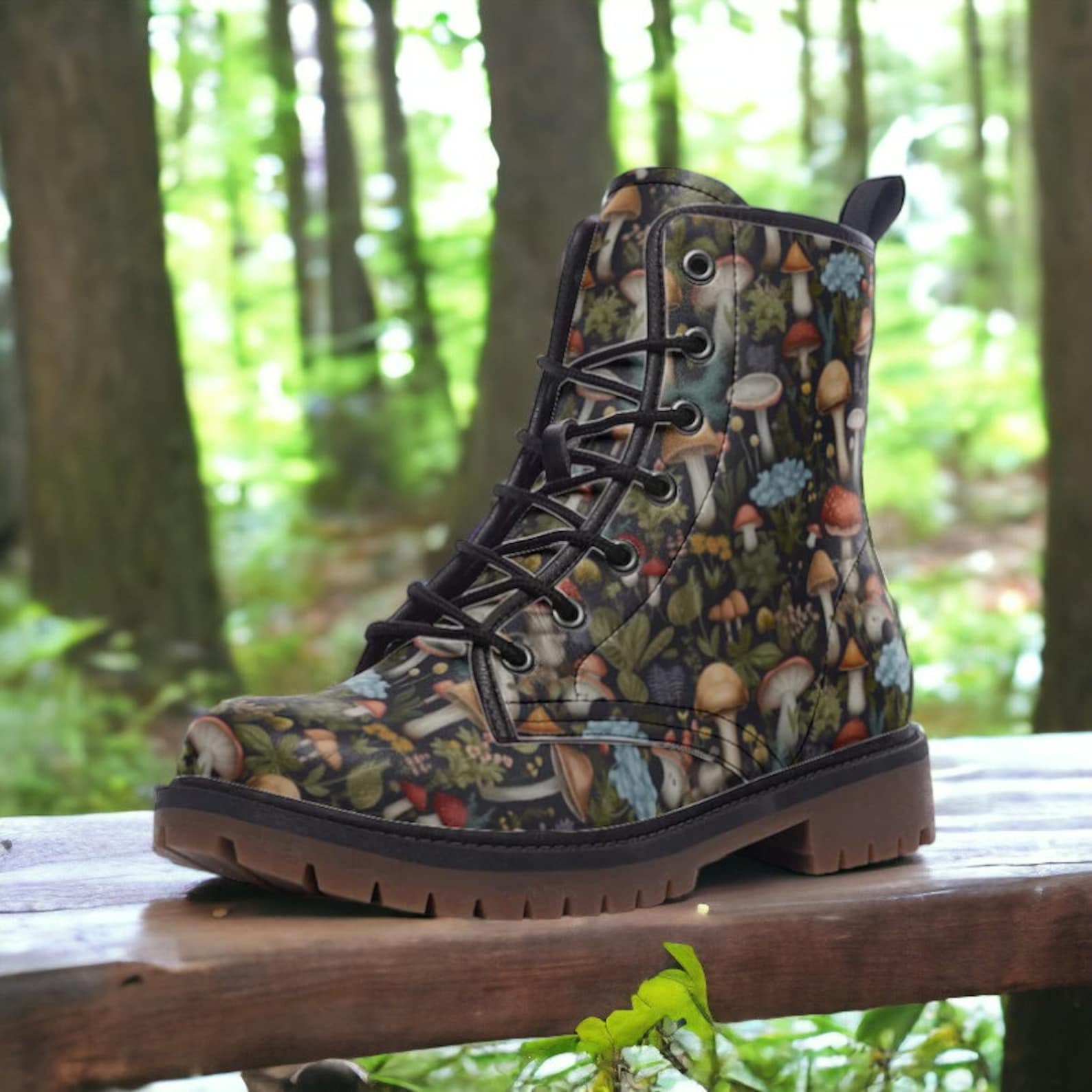 Hippie Art Zone - Woodland Mushrooms Combat Boots.