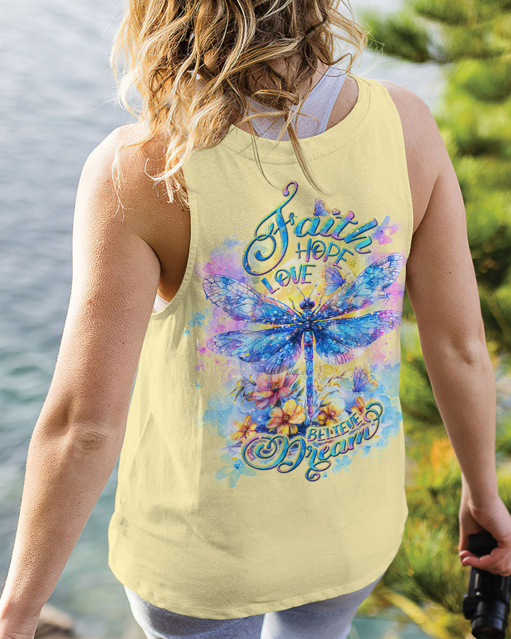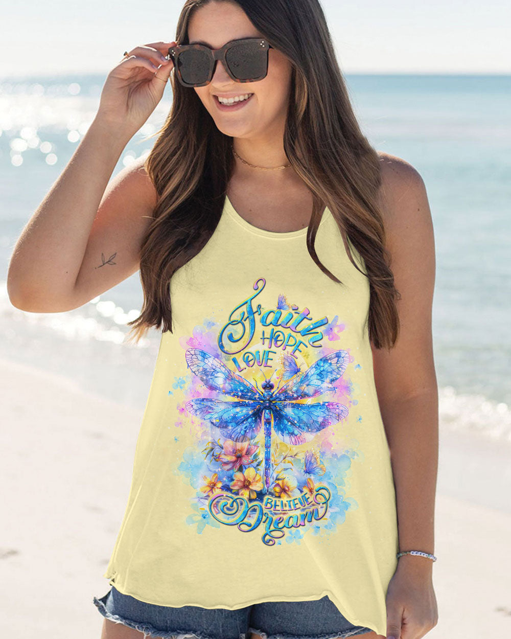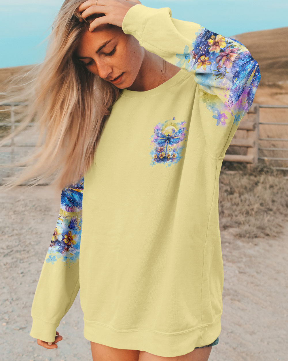 The all-over print "Faith Hope Love Dragonfly" features a beautiful design that intertwines vibrant dragonflies with meaningful symbols of faith, hope and love. Perfect for those who value positivity and inspiration, this print encourages resilience and connection. Crafted from a soft, comfortable fabric, it's ideal for everyday wear. The uplifting imagery adds a heartfelt touch to your wardrobe, reminding you to embrace these values in your everyday life.