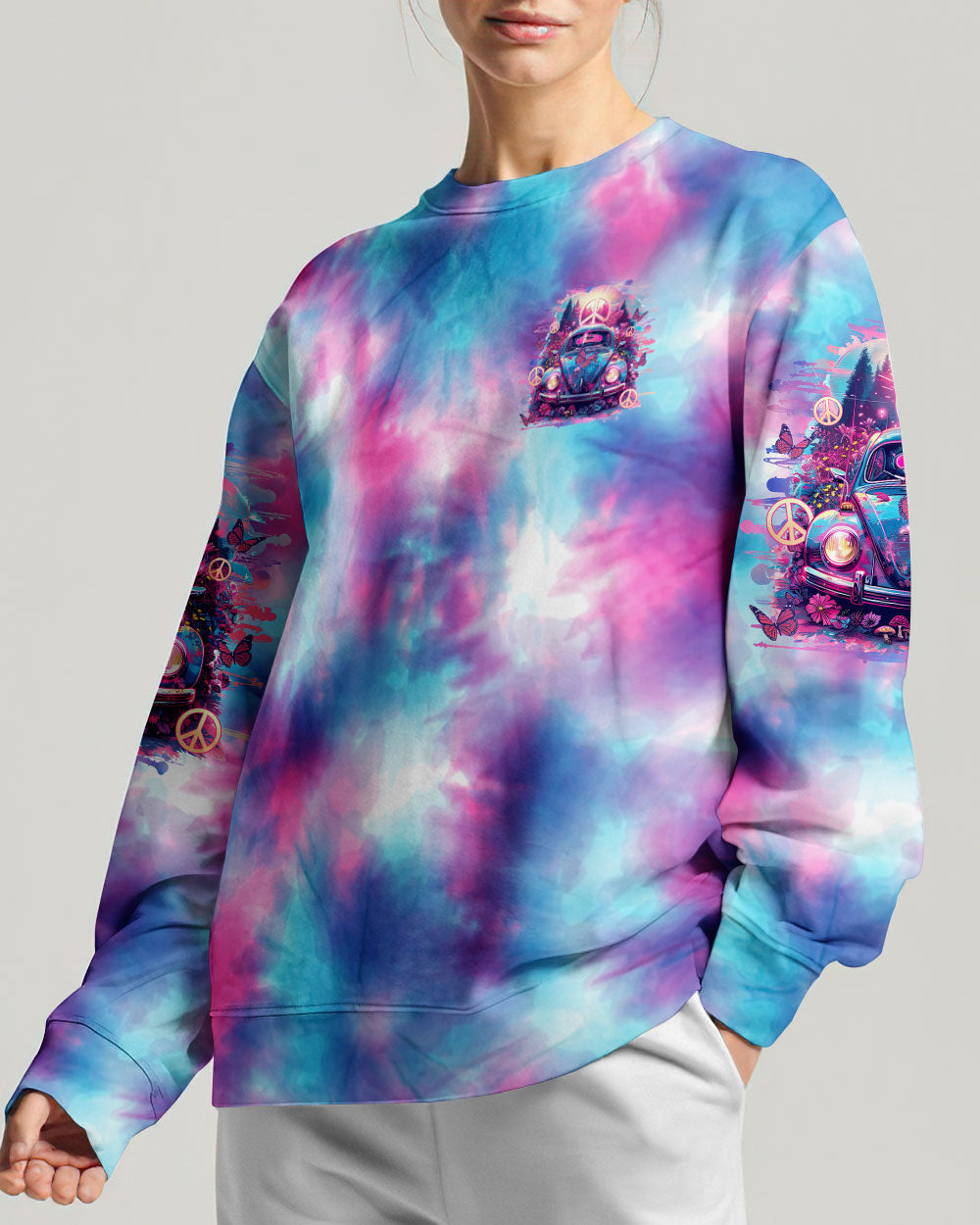 The all-over Tie Dye "Here Comes the Sun" print features a vibrant tie-dye design that radiates positivity and warmth, inspired by the classic song. Perfect for those who embrace a carefree, light-hearted outlook on life, this print celebrates brightness and joy. Crafted from soft, breathable fabric, it's ideal for casual wear and summer outings. The colorful print adds a playful, playful touch to your wardrobe, reminding you to approach each day with optimism and happiness.