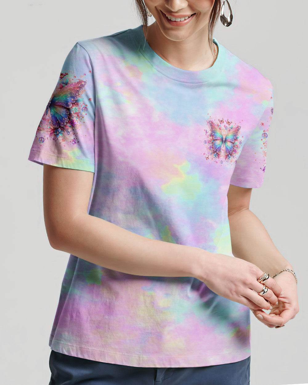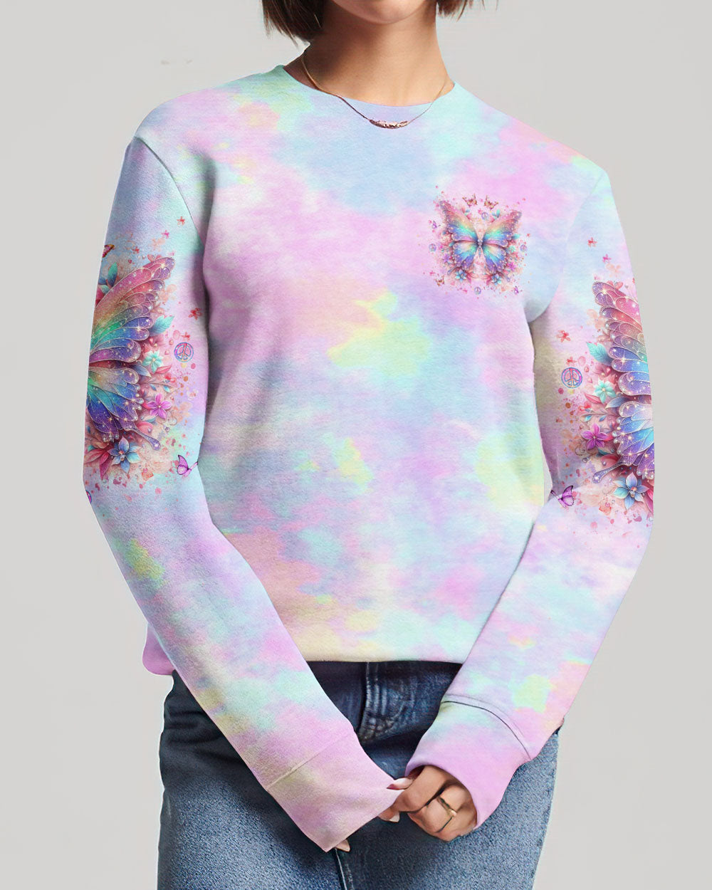 The all-over "I Believe There Are Angels Among Us Butterfly" print features a captivating design that combines graceful butterflies with a heartfelt message about the presence of angels in our lives. Perfect for those who find comfort in the spirituality and beauty of nature, this print promotes feelings of hope and connection. Crafted from a soft, breathable fabric, it's ideal for everyday wear. The captivating image adds a touch of magic to your wardrobe, reminding you that love and guidance are always nearby.