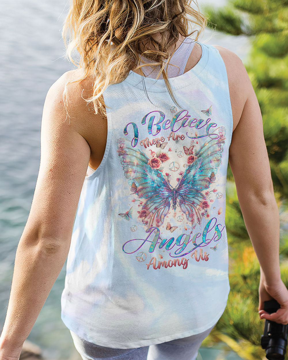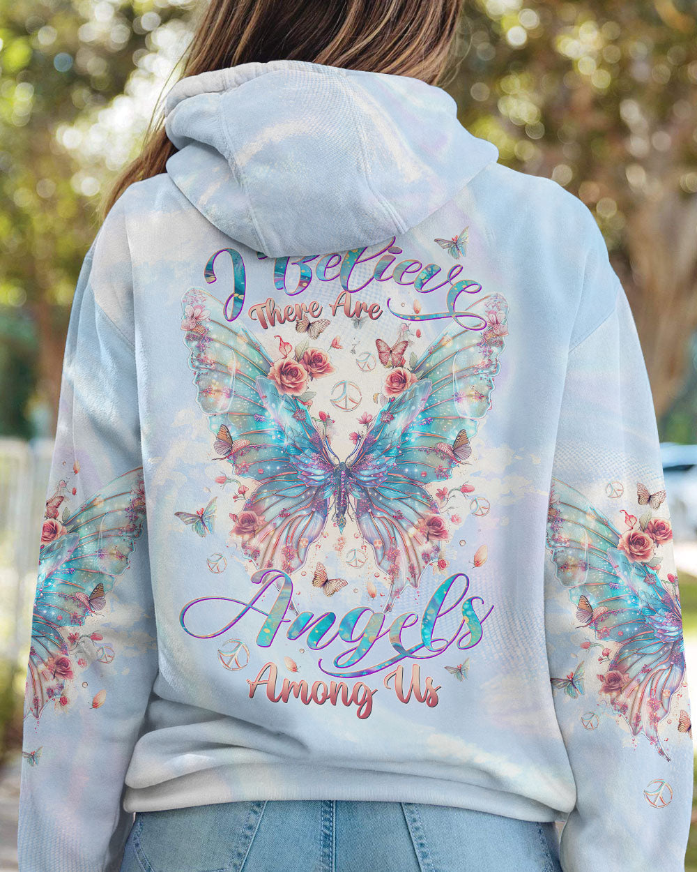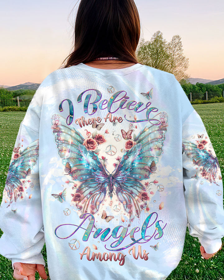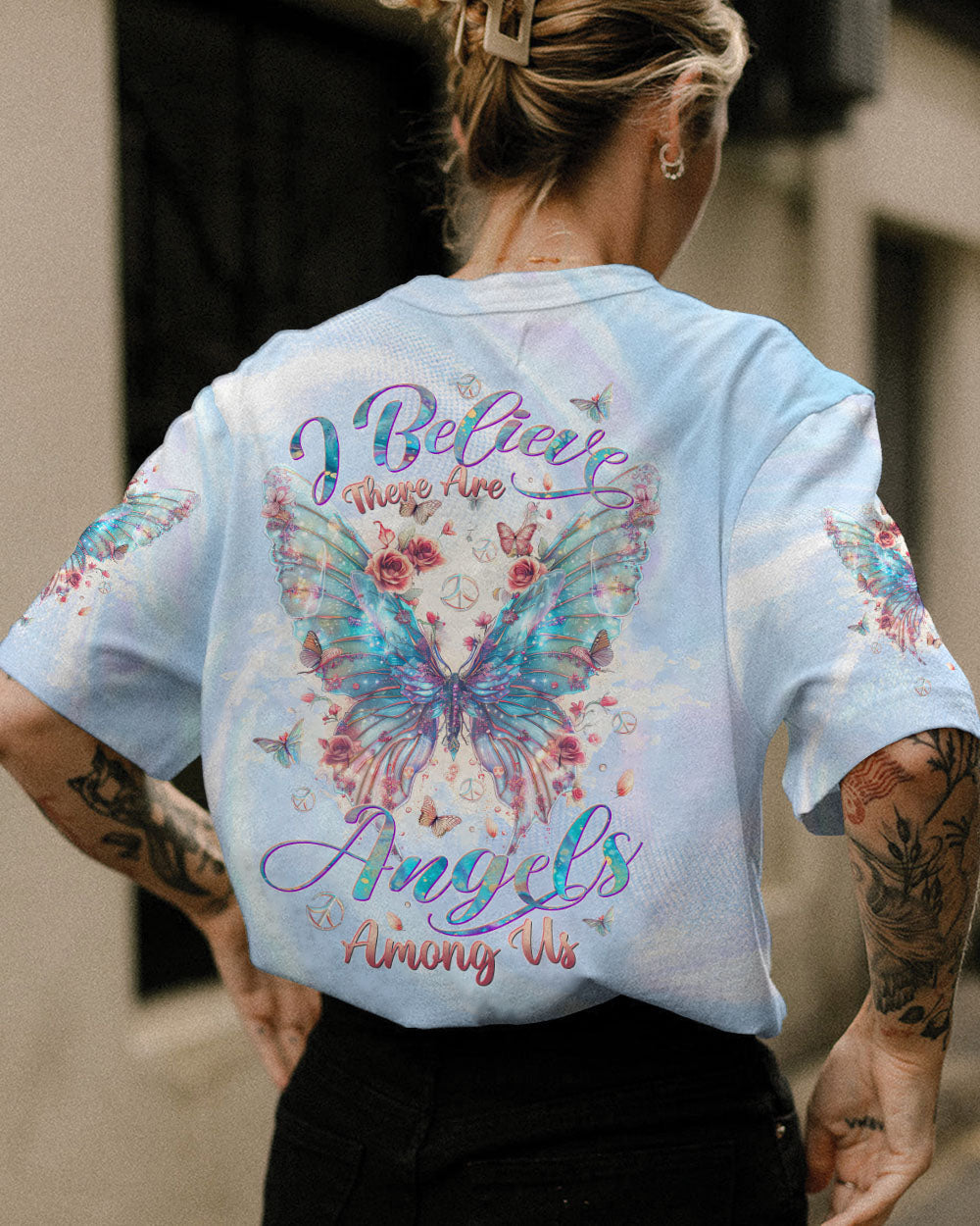 The all-over print "I Believe There Are Angels Among Us Butterfly Wings" features a delicate design that showcases the beautiful wings of butterflies and an uplifting message about the presence of angels in our lives. Perfect for those who find comfort in spirituality and nature, this print inspires hope and a sense of connection. Crafted from a soft, breathable fabric, it's ideal for everyday wear. The captivating image adds a magical touch to your wardrobe, reminding you that you are always surrounded by love and support.
