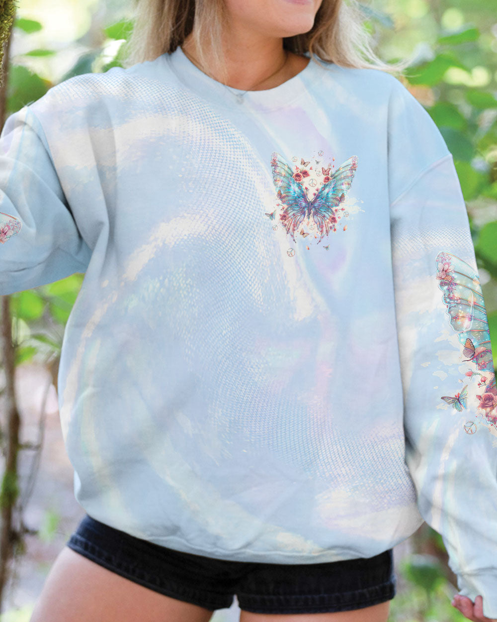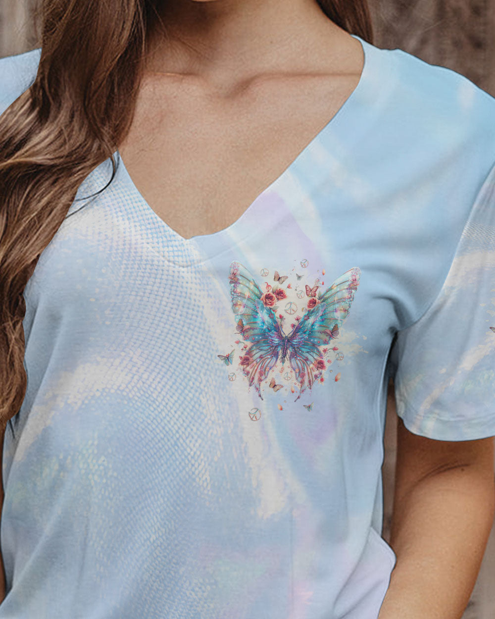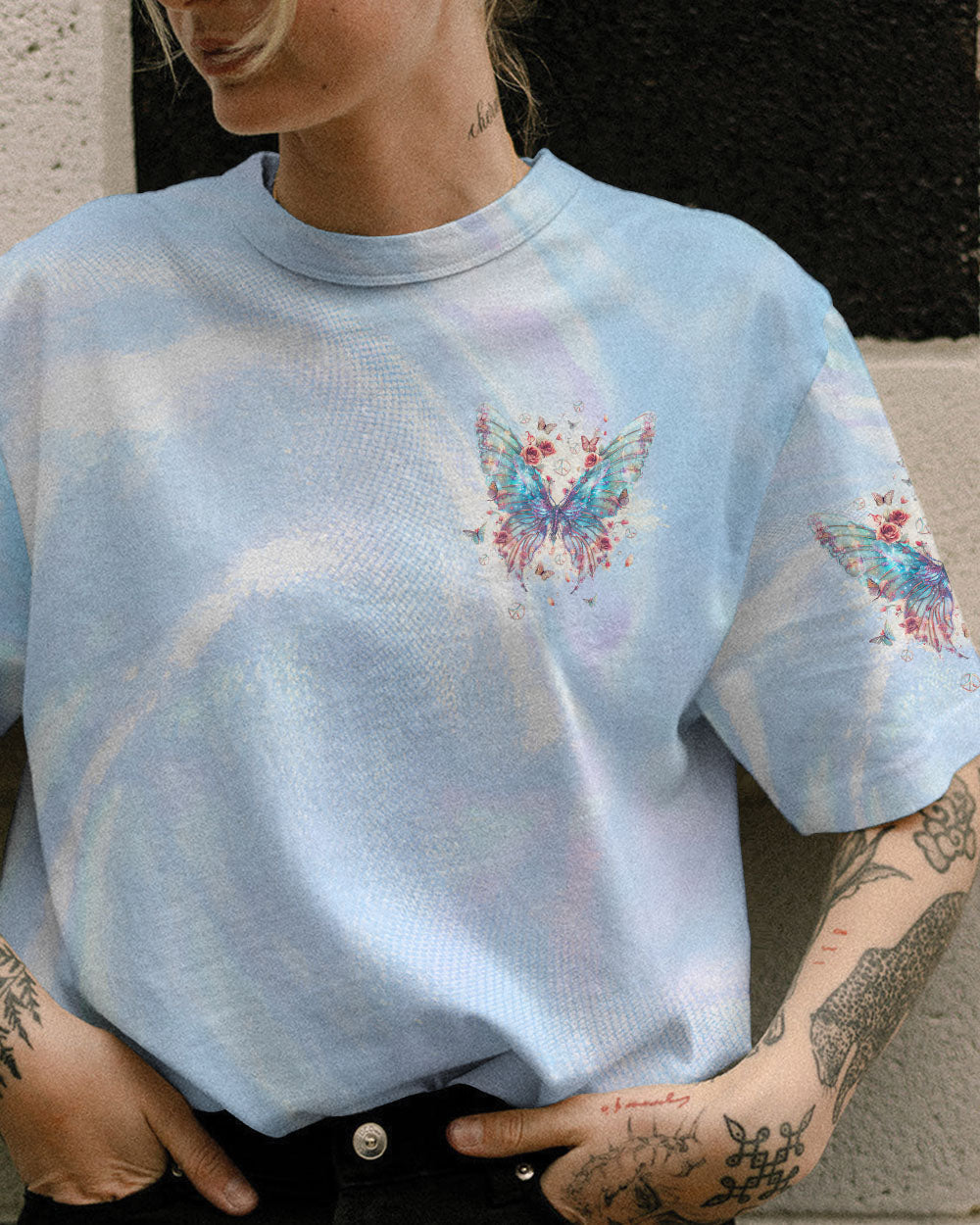 The all-over print "I Believe There Are Angels Among Us Butterfly Wings" features a delicate design that showcases the beautiful wings of butterflies and an uplifting message about the presence of angels in our lives. Perfect for those who find comfort in spirituality and nature, this print inspires hope and a sense of connection. Crafted from a soft, breathable fabric, it's ideal for everyday wear. The captivating image adds a magical touch to your wardrobe, reminding you that you are always surrounded by love and support.