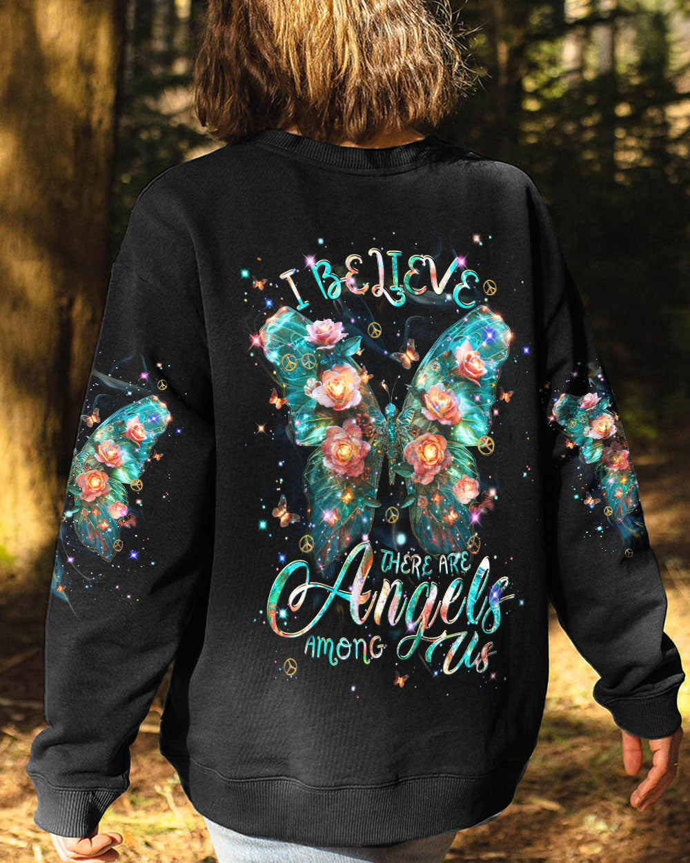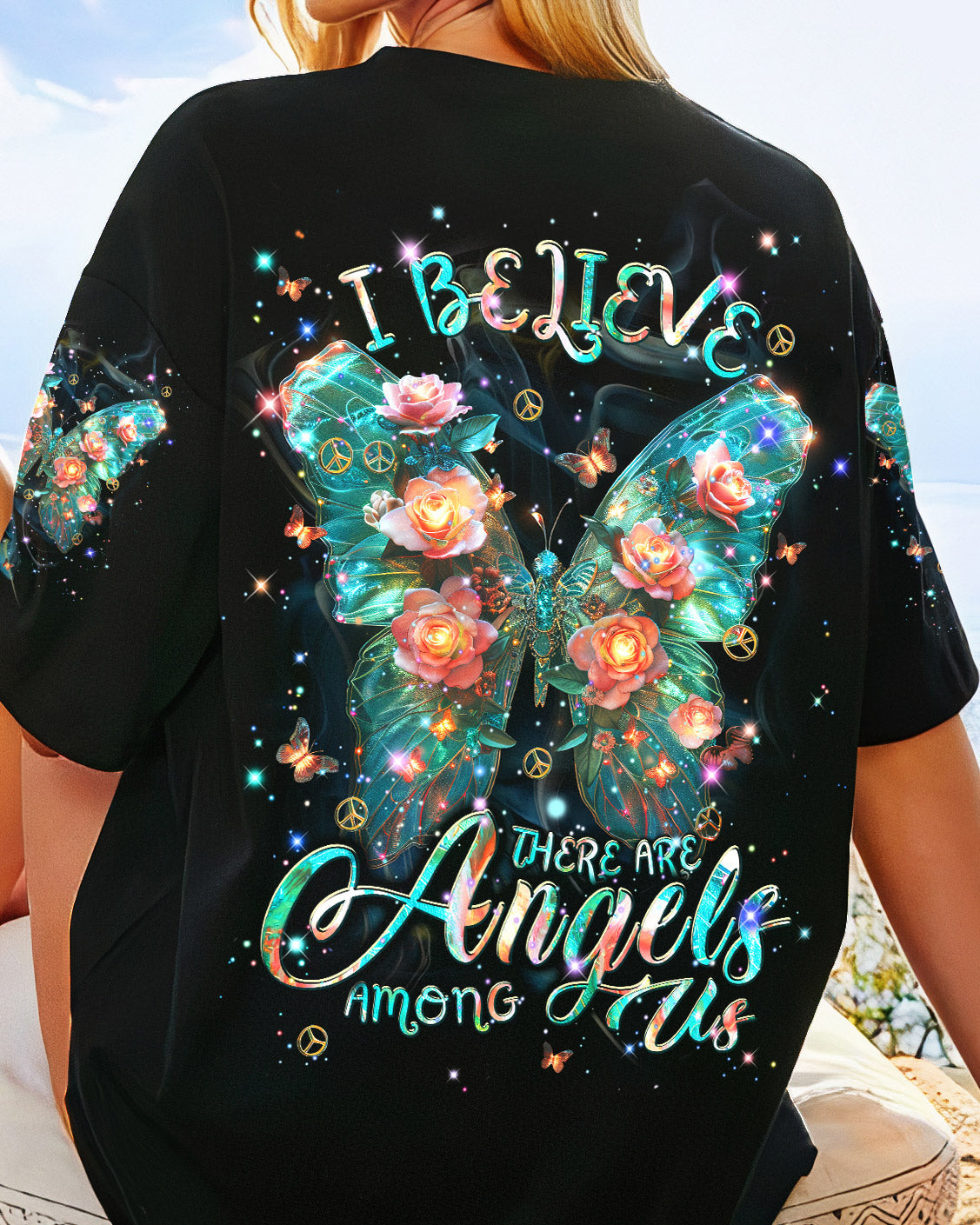 The “I Believe There Are Angels Among Us Wings for Hippie” all-over print features a beautiful design that showcases the delicate wings of angels and a comforting message about the presence of angels in our lives. Perfect for those who find solace in spirituality and the concept of guardian spirits, this print inspires hope and connection. Crafted from a soft, breathable fabric, it’s perfect for everyday wear. The charming image brings a touch of spirituality to your wardrobe, reminding you that love and support always surround you.