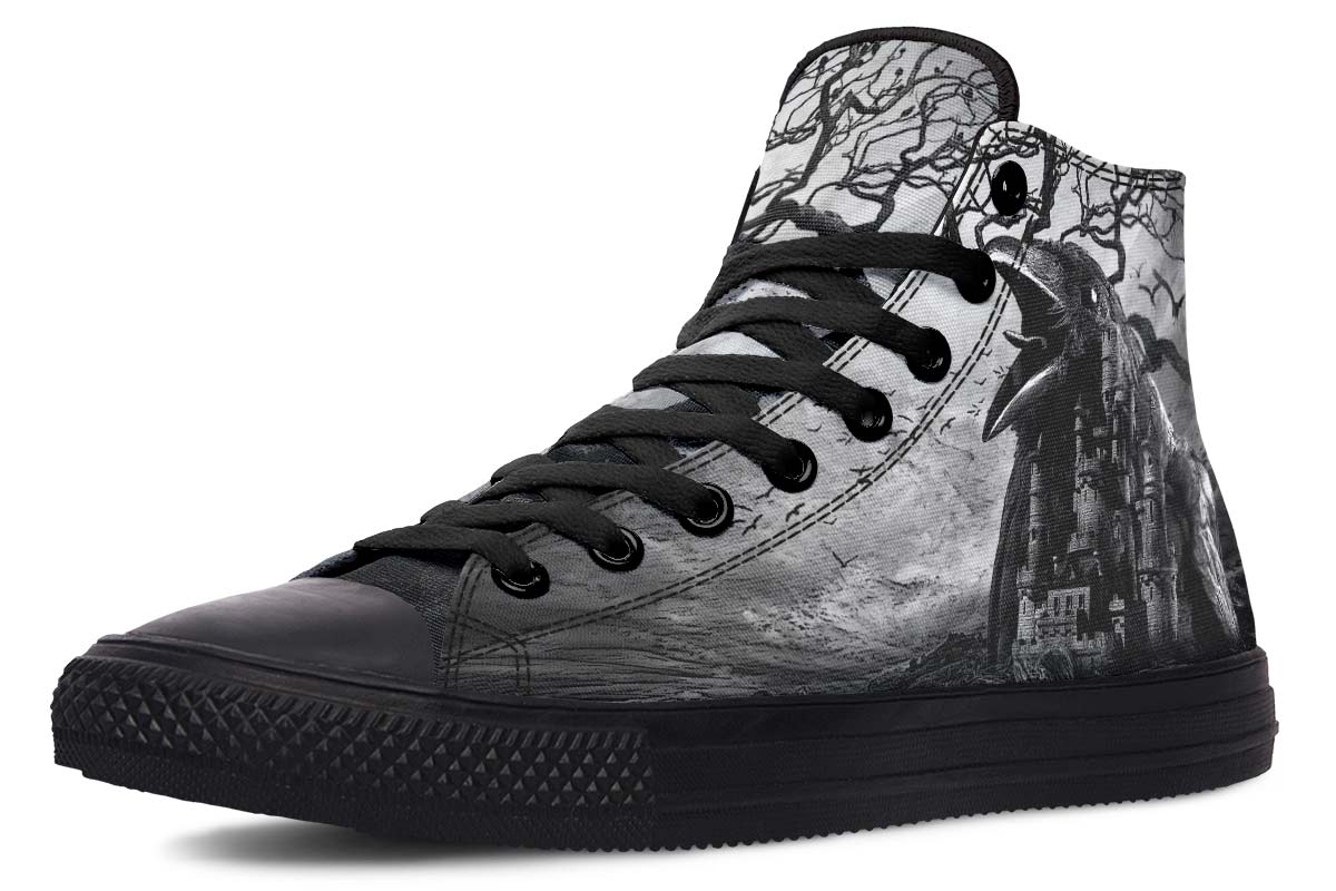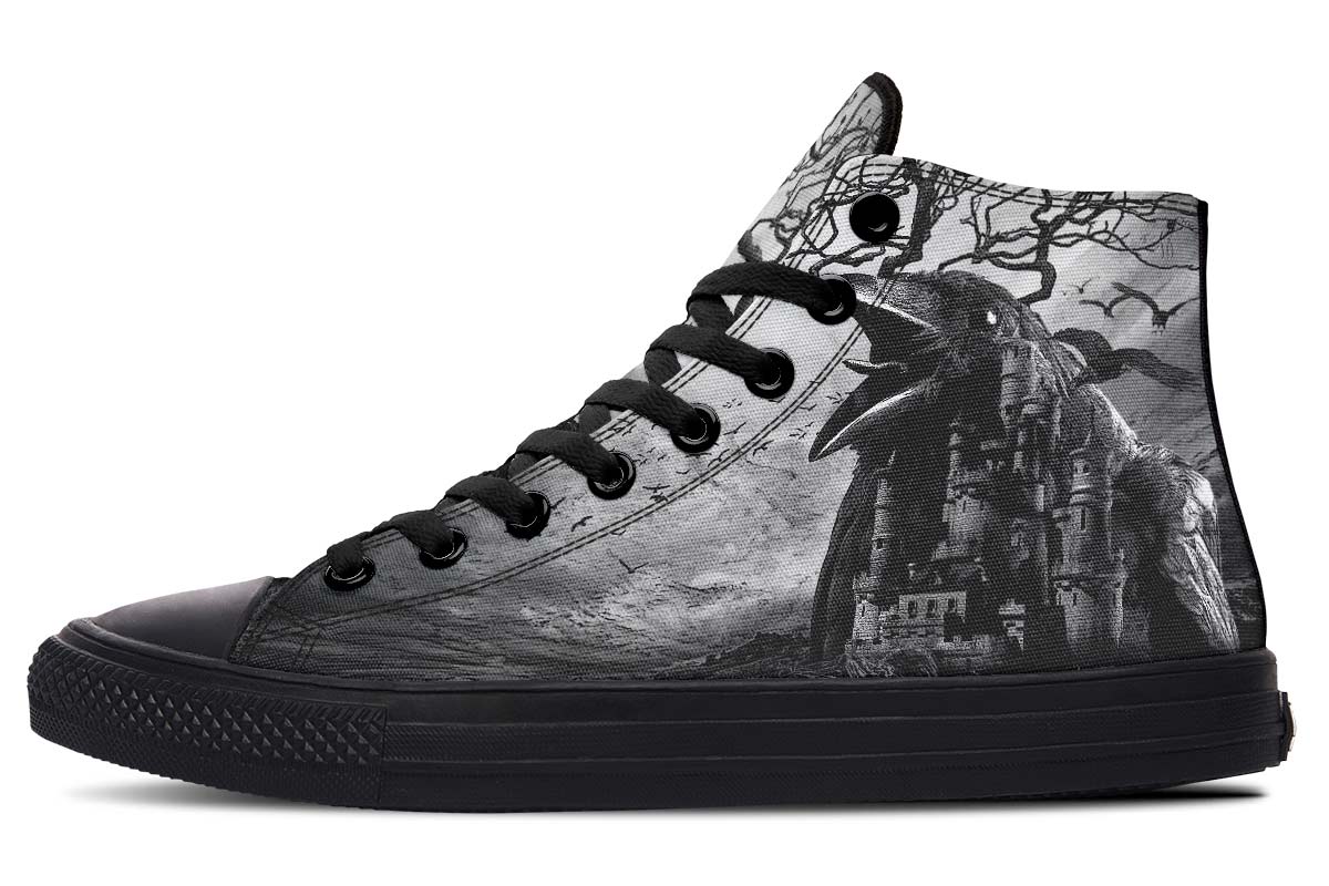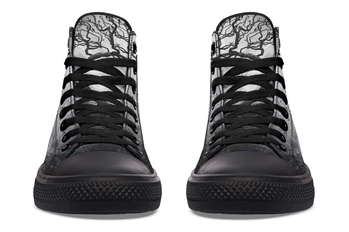 - Step into style with our High-Top Sneakers, featuring a full canvas double-sided print with rounded toe construction.