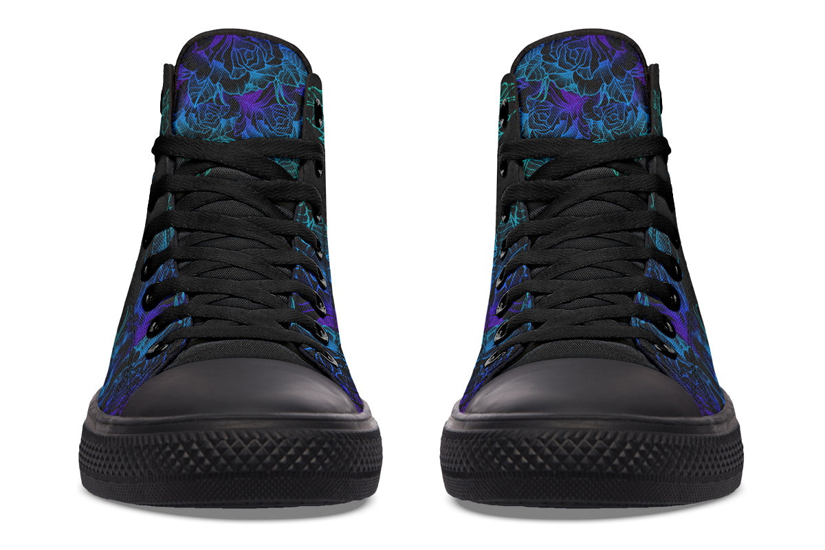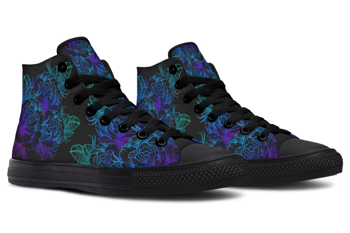 - Step into style with our High-Top Sneakers, featuring a full canvas double-sided print with rounded toe construction.