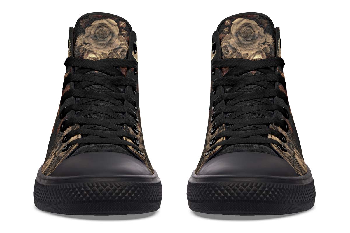 - Step into style with our High-Top Sneakers, featuring a full canvas double-sided print with rounded toe construction.