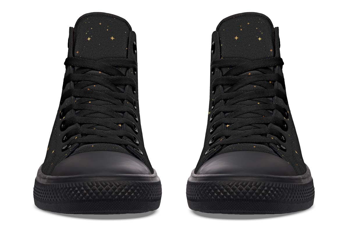 - Step into style with our High-Top Sneakers, featuring a full canvas double-sided print with rounded toe construction.