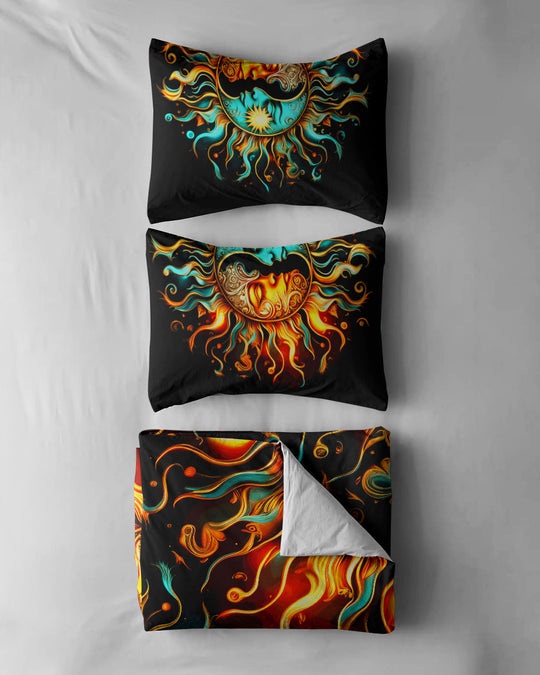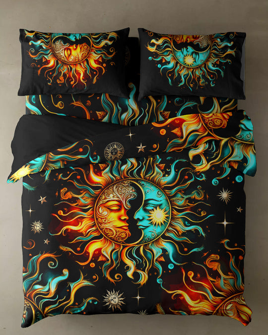 Hippie Art Zone - Sun and Moon Bedding Set For Hippies