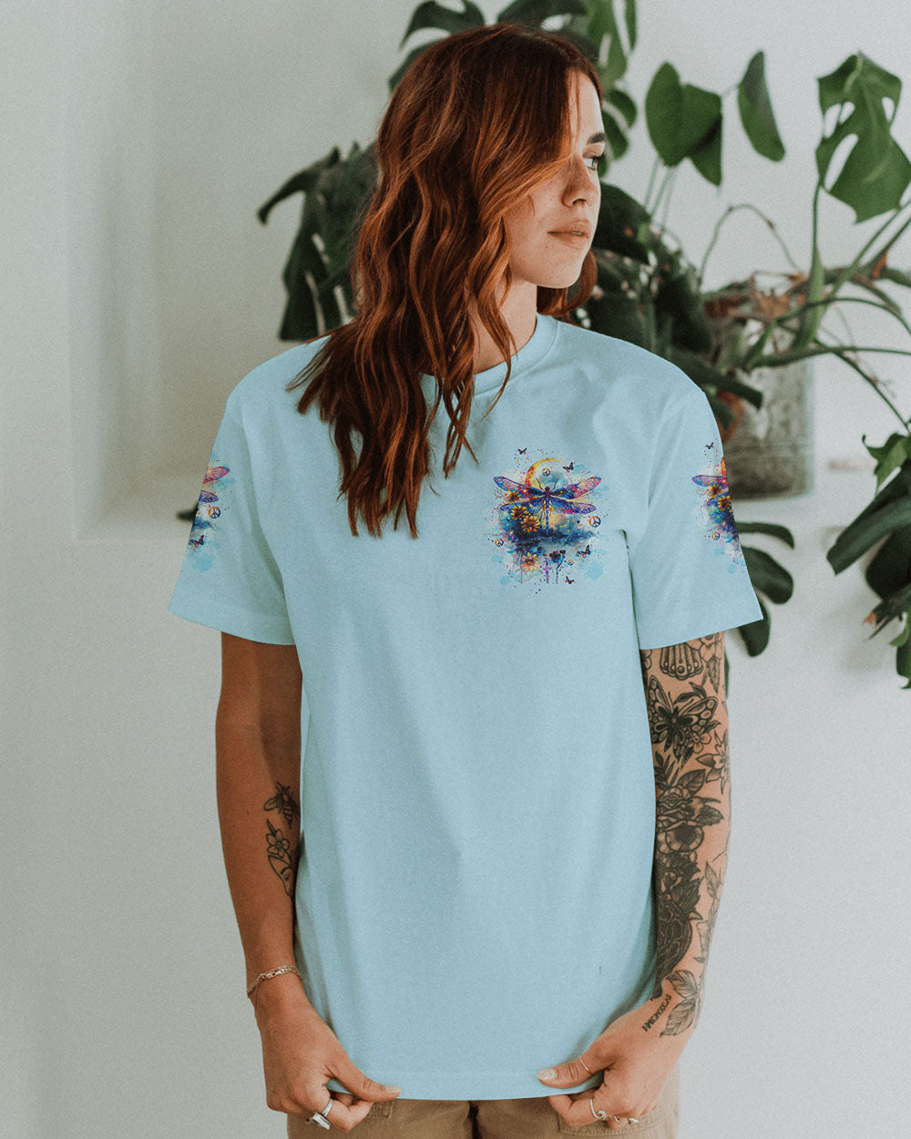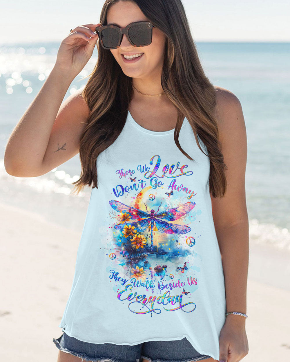 The all-over print "Those We Love Don't Go Away Dragonfly" features a heartfelt design, featuring elegant dragonflies and a comforting message of love and memory. Perfect for those who cherish the memories of loved ones, this print offers comfort and inspiration. Crafted from a soft, breathable fabric, it's ideal for everyday wear. This beautiful print brings a lightness to your wardrobe, reminding you that love transcends time and distance.