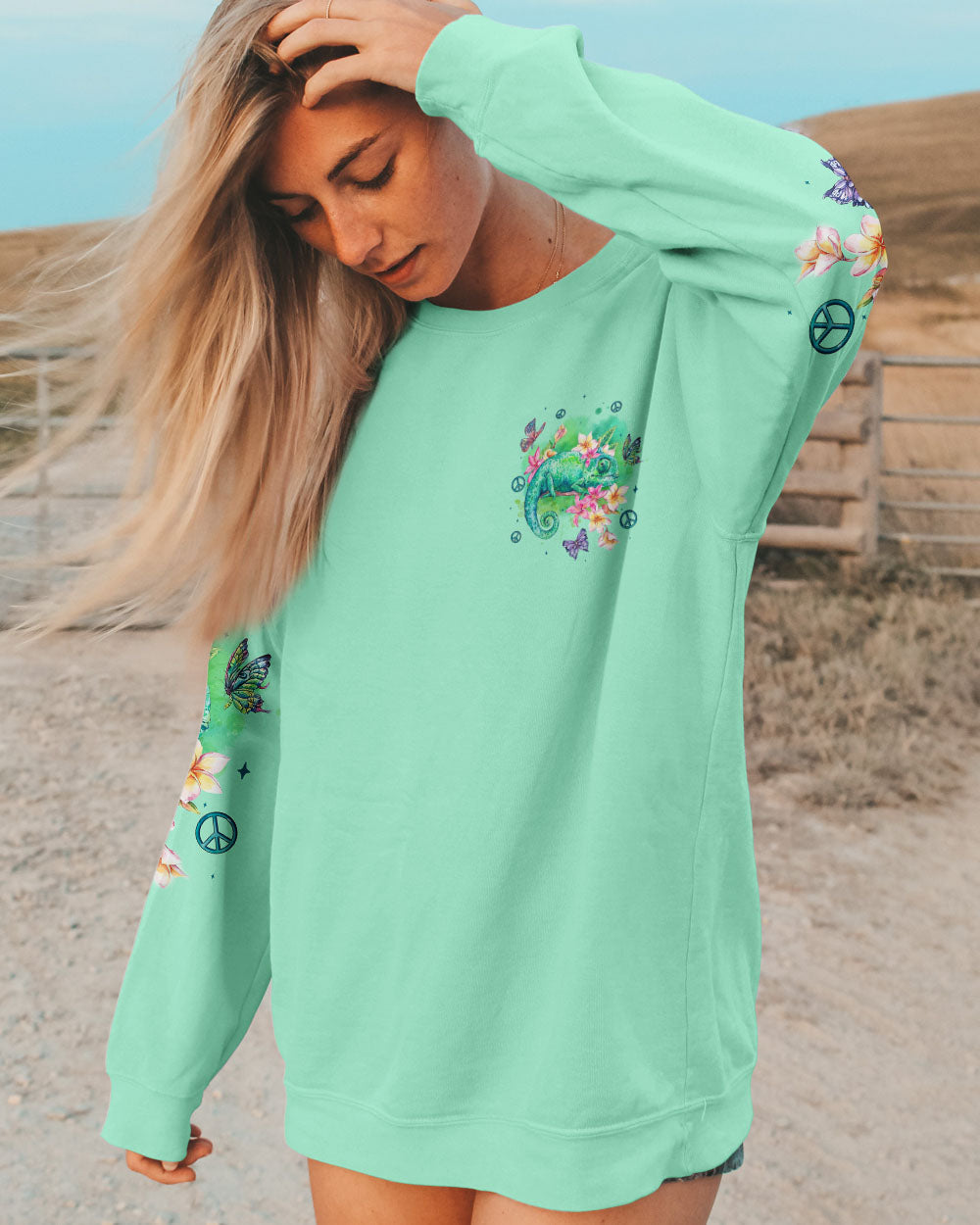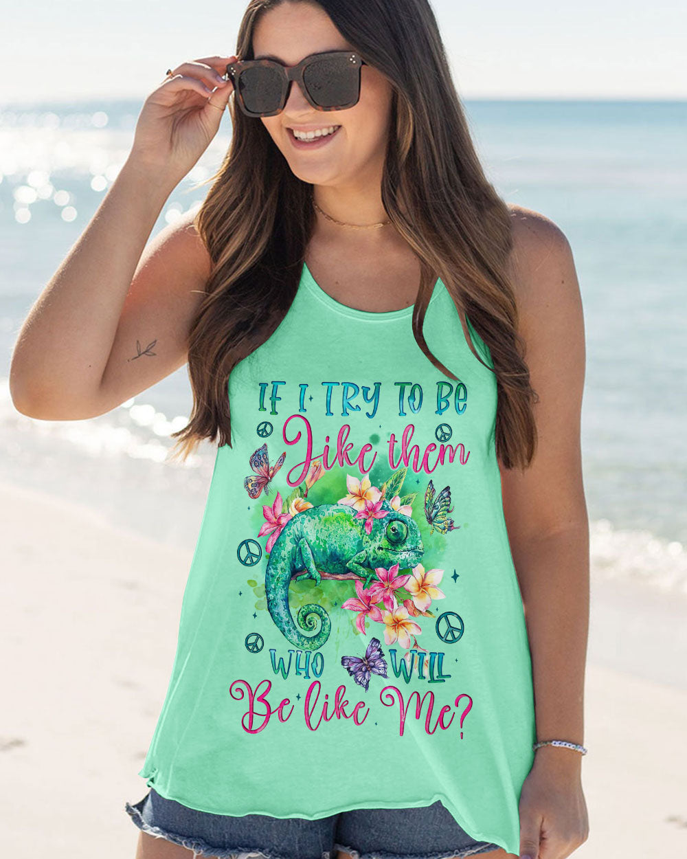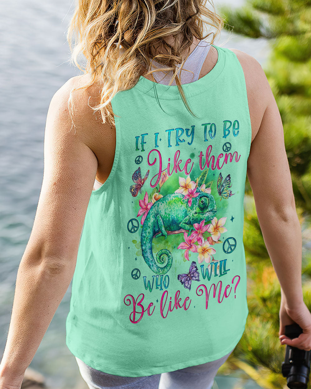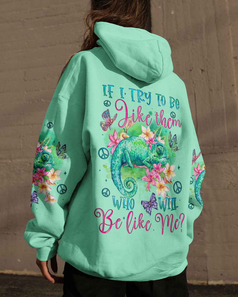 The all-over print "Who Will Be Like Me Chameleon" features a vibrant design of colorful chameleons and a playful, thought-provoking message. Perfect for those who celebrate their unique personality and perspective, this print encourages self-acceptance and confidence. Made from soft, breathable fabric, it's perfect for everyday wear. The eye-catching graphic adds a playful touch to your wardrobe, reminding you to celebrate what makes you unique.