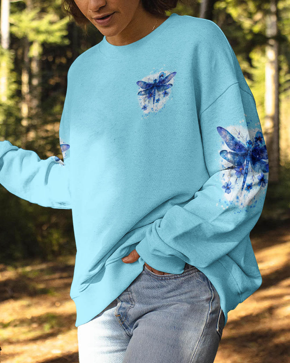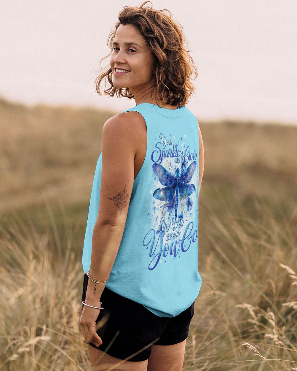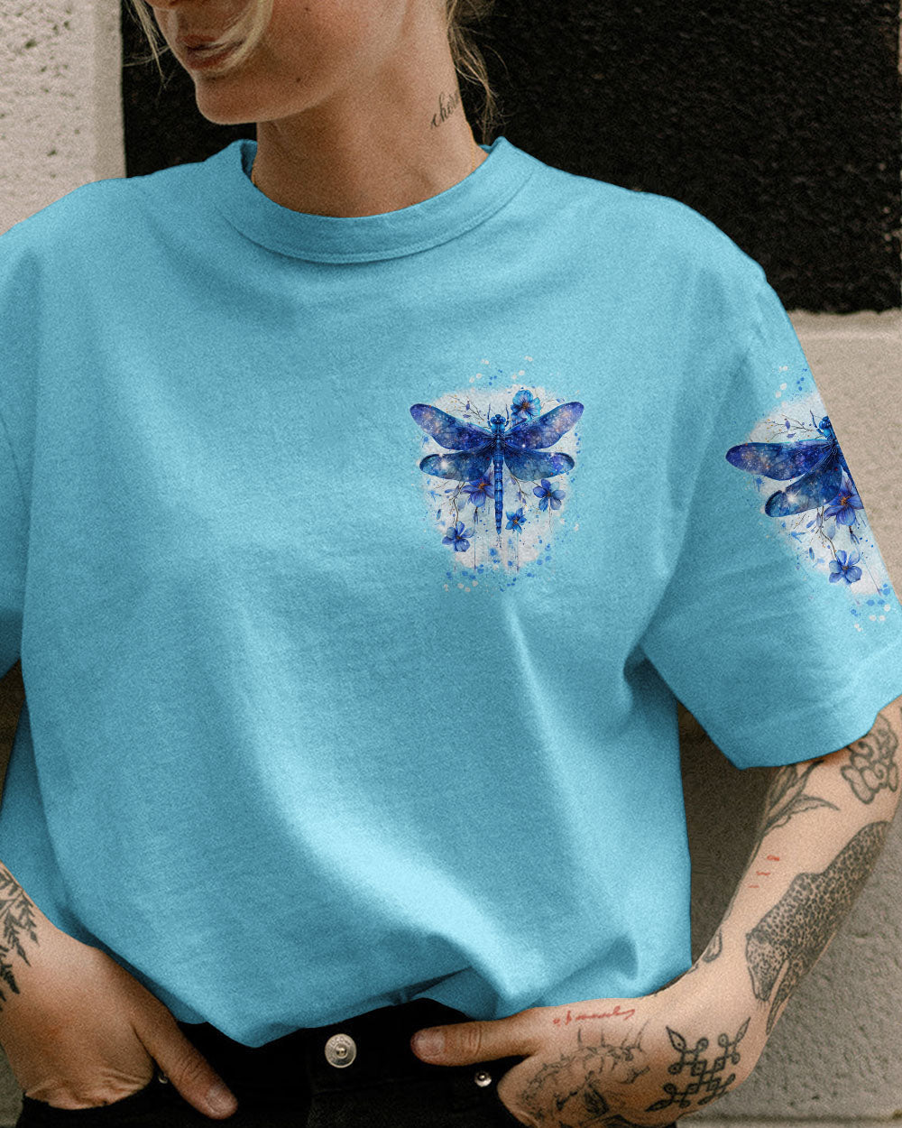 The all-over print "You Sparkle and Glow Dragonfly" features a vibrant design featuring beautiful dragonflies along with a playful, upbeat message. Perfect for those who embrace their uniqueness and radiate positivity, this print encourages self-expression and confidence. Crafted from a soft, comfortable fabric, it's ideal for everyday wear. The eye-catching graphic adds a bright touch to your wardrobe, reminding you to let your true colours shine and inspire others.