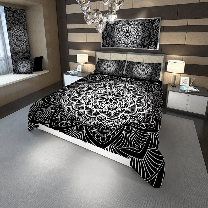 Hippie Art Zone - Black And White Mandala Bedding Set For Hippies