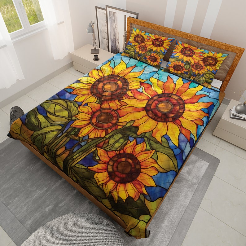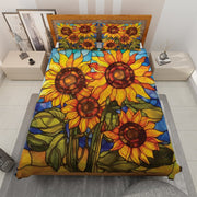 Colorful Sunflower Hippie Bedding Set: This bedding set features vibrant sunflowers in a vibrant, psychedelic design. Perfect for adding a pop of color and a sense of freedom to any bedroom, combining bold patterns with a playful, hippie-inspired aesthetic.