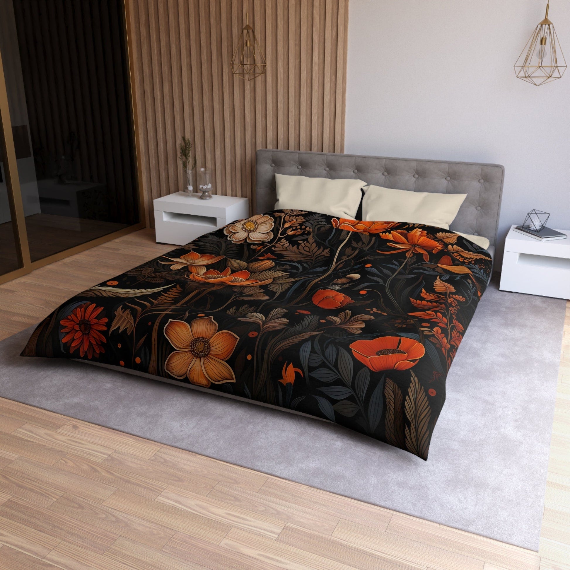 Hippie Art Zone - Dark Academia Autumn Leaves and Flowers, Halloween Bedding Set For Hippies