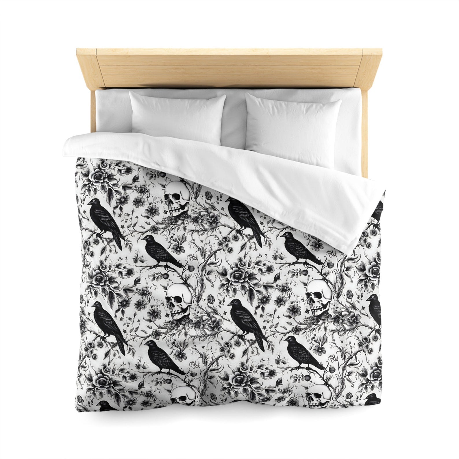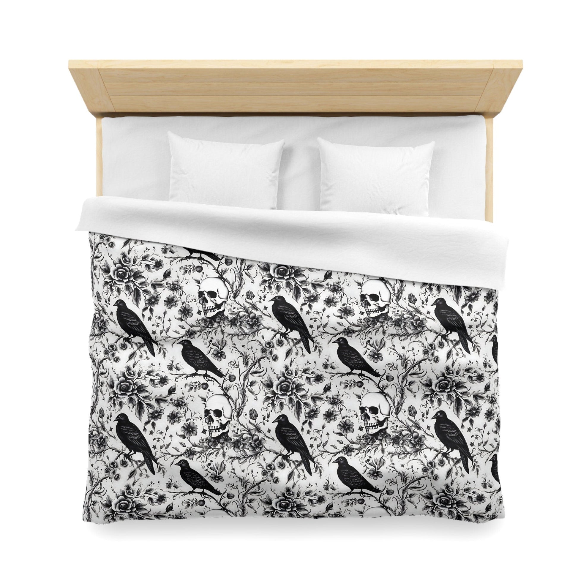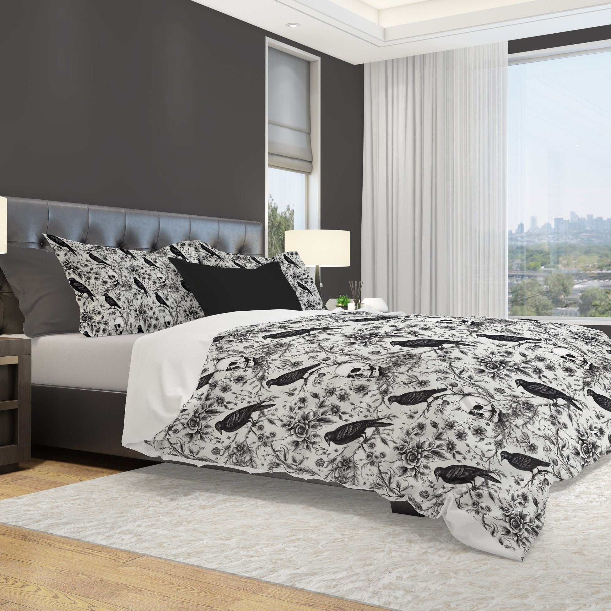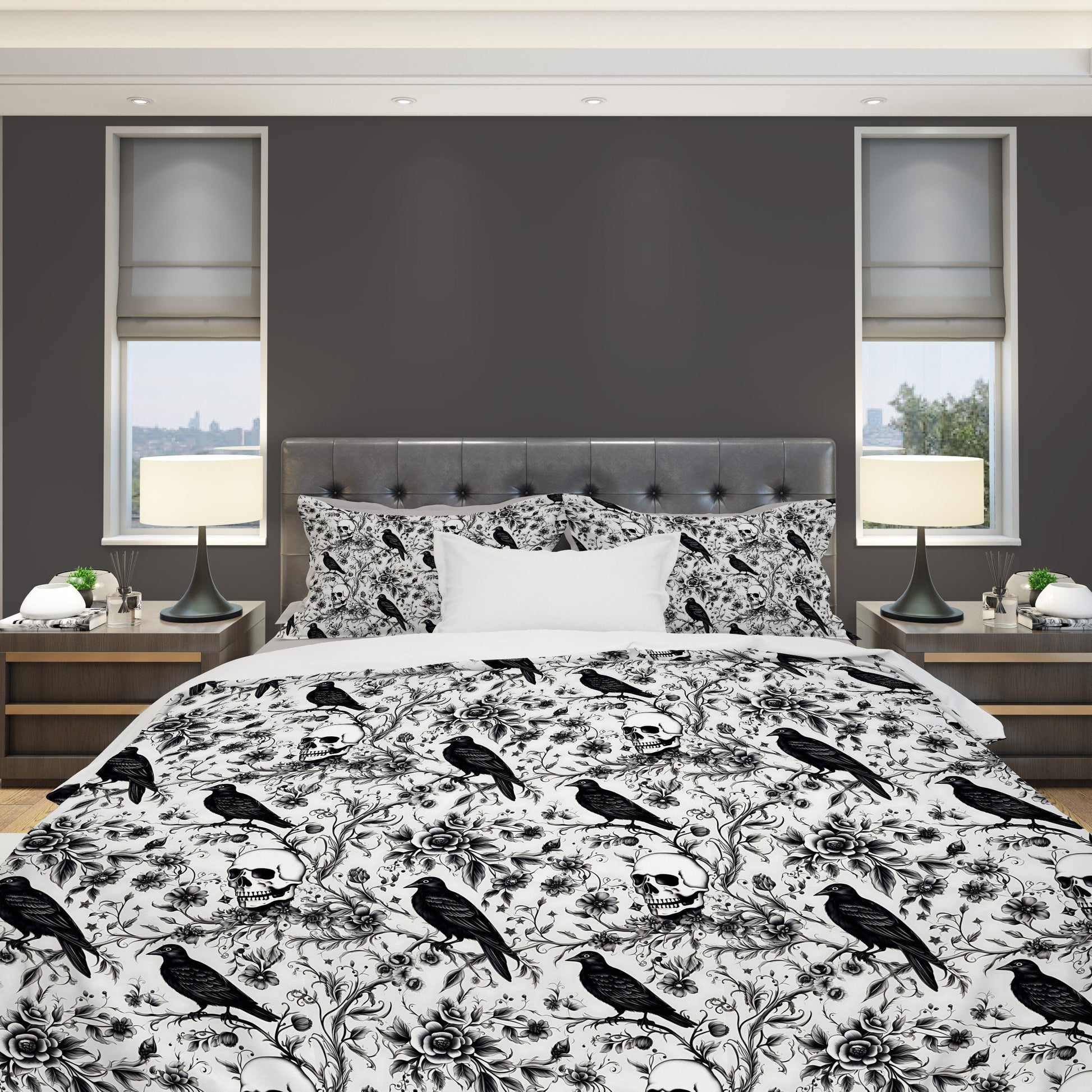 Hippie Art Zone - Enchanted Autumn, Halloween Raven Skull Garden Bedding Set For Hippies