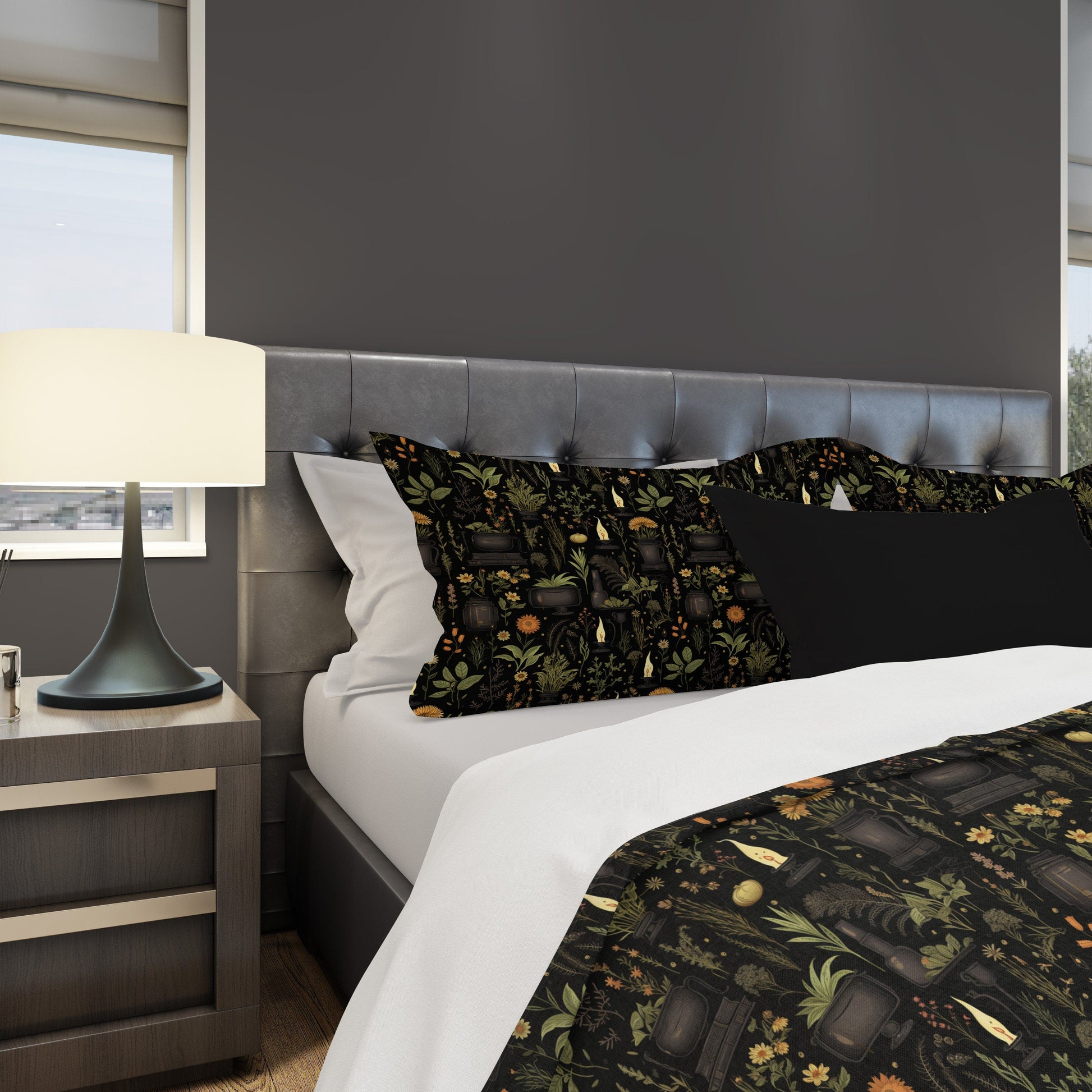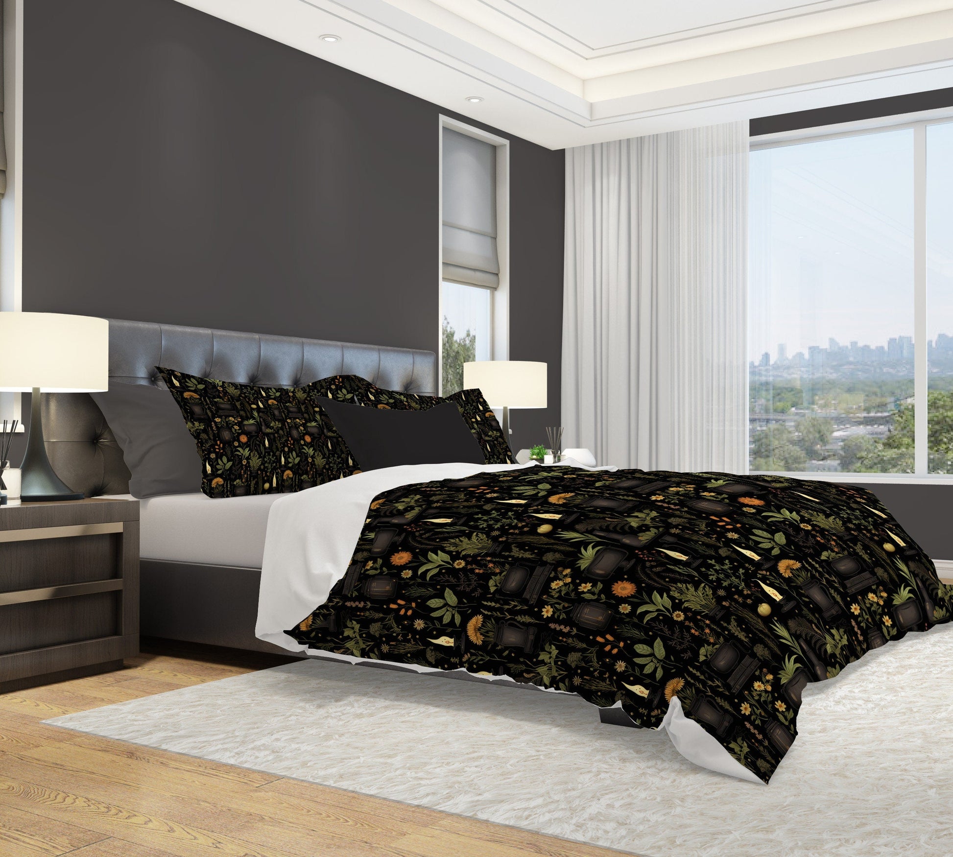 Beautify your space with the BDS The Spells of Herbs Bedding Set. This witchy woodland themed collection features intricate herb prints and rich emerald tones, combining mystical allure with bohemian elegance. Perfect for those who embrace a free-spirited, nature-inspired style, it creates a cozy, enchanting atmosphere ideal for any hippie retreat.