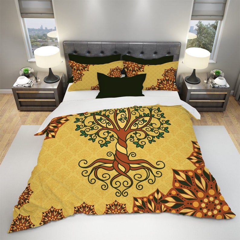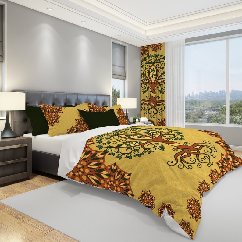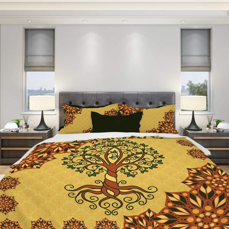 Elevate your bedroom with the Tree of Life Mandala Bedding Set, perfect for free-spirited souls. Featuring a beautifully intricate Tree of Life design interwoven with mandala motifs, this set represents growth and harmony. Crafted from soft, high-quality fabrics, the set is both comfortable and spiritually elegant. Transform your space into a tranquil boho retreat with this charming bedding set.