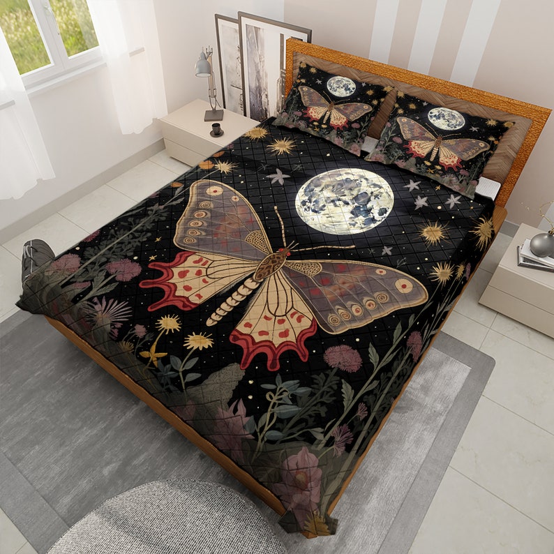 Celestial Moon & Butterfly Vintage Bedding Set: This bedding set features a vintage design featuring a moon and butterfly motif. The pattern combines these elements in a unique and decorative way, adding a special touch to your bedroom d?cor.