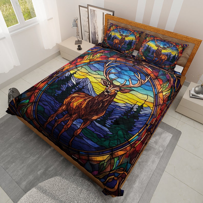 Hippie Art Zone - Vintage Reindeer Christmas Quilt Bedding Set For Hippie