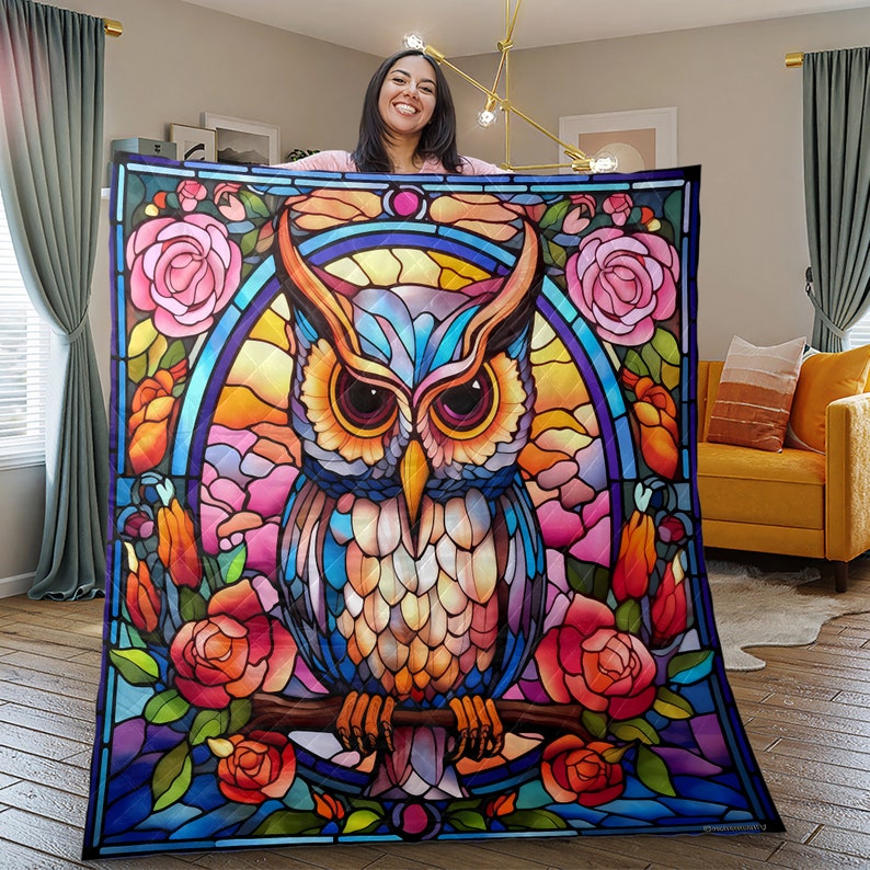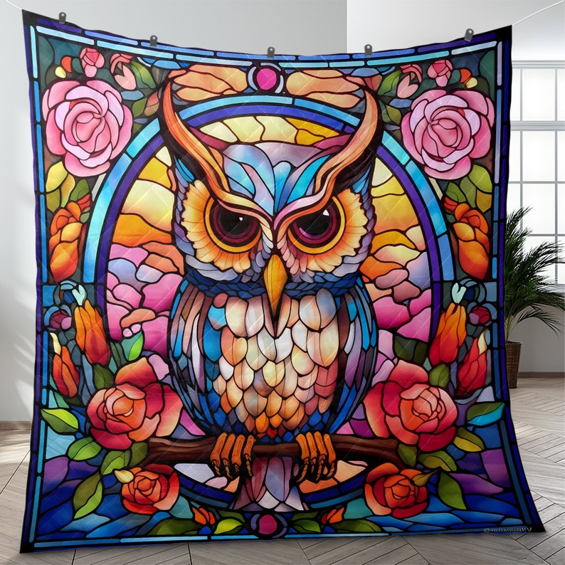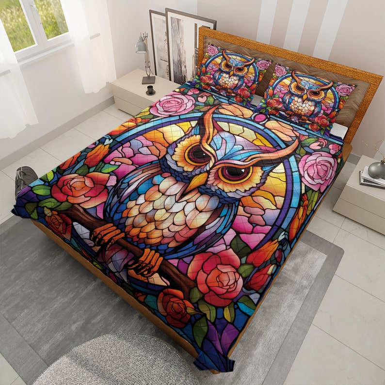 Hippie Art Zone - Vintage Wildlife Owl with Flowers Quilt Bedding Set For Hippie