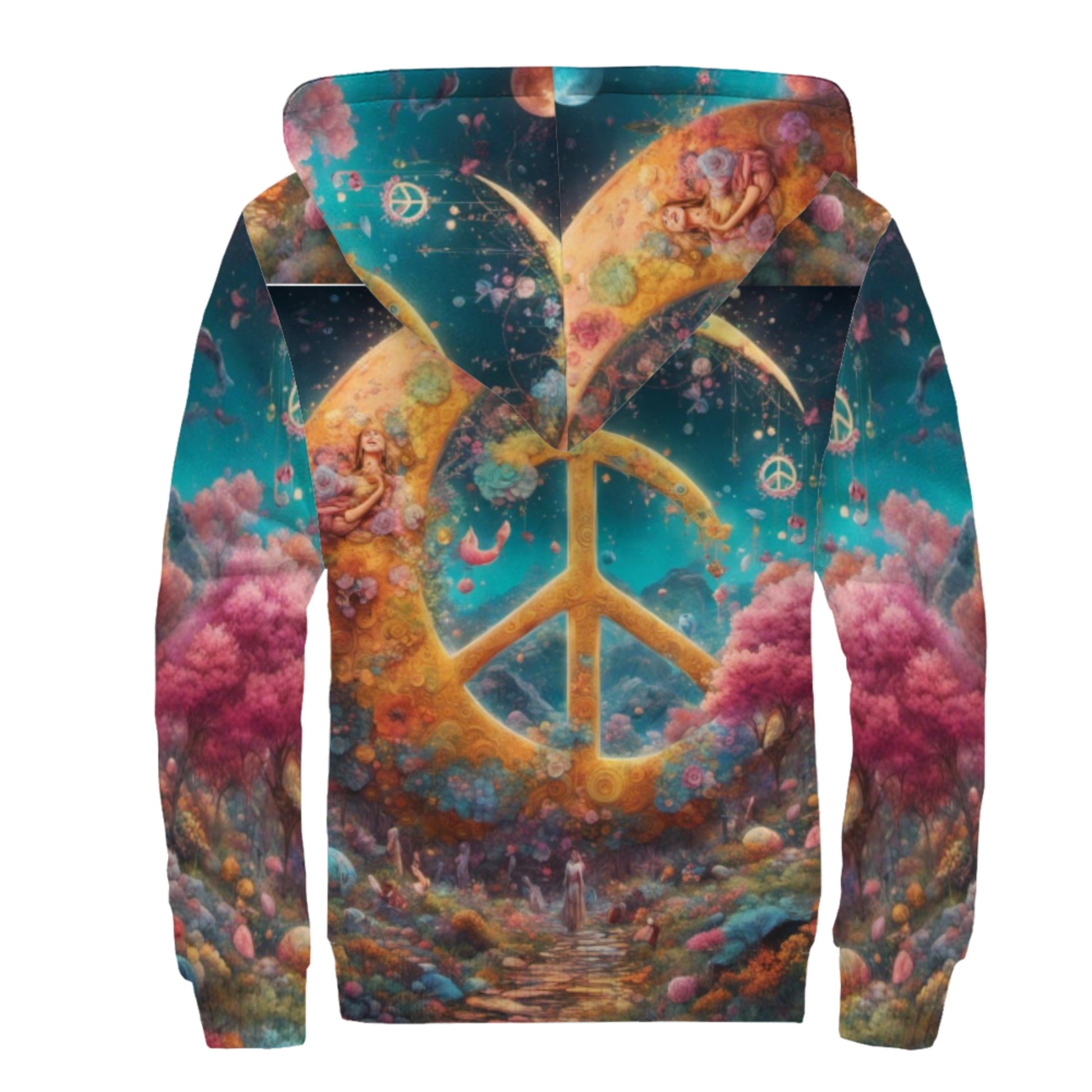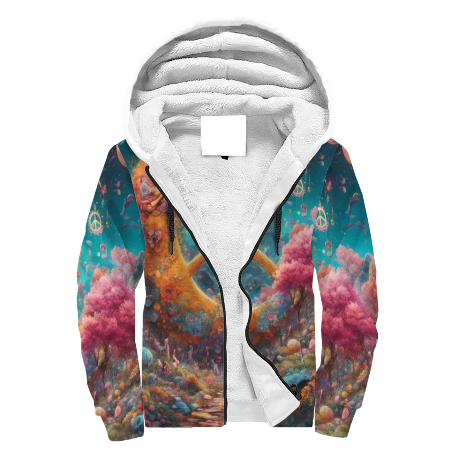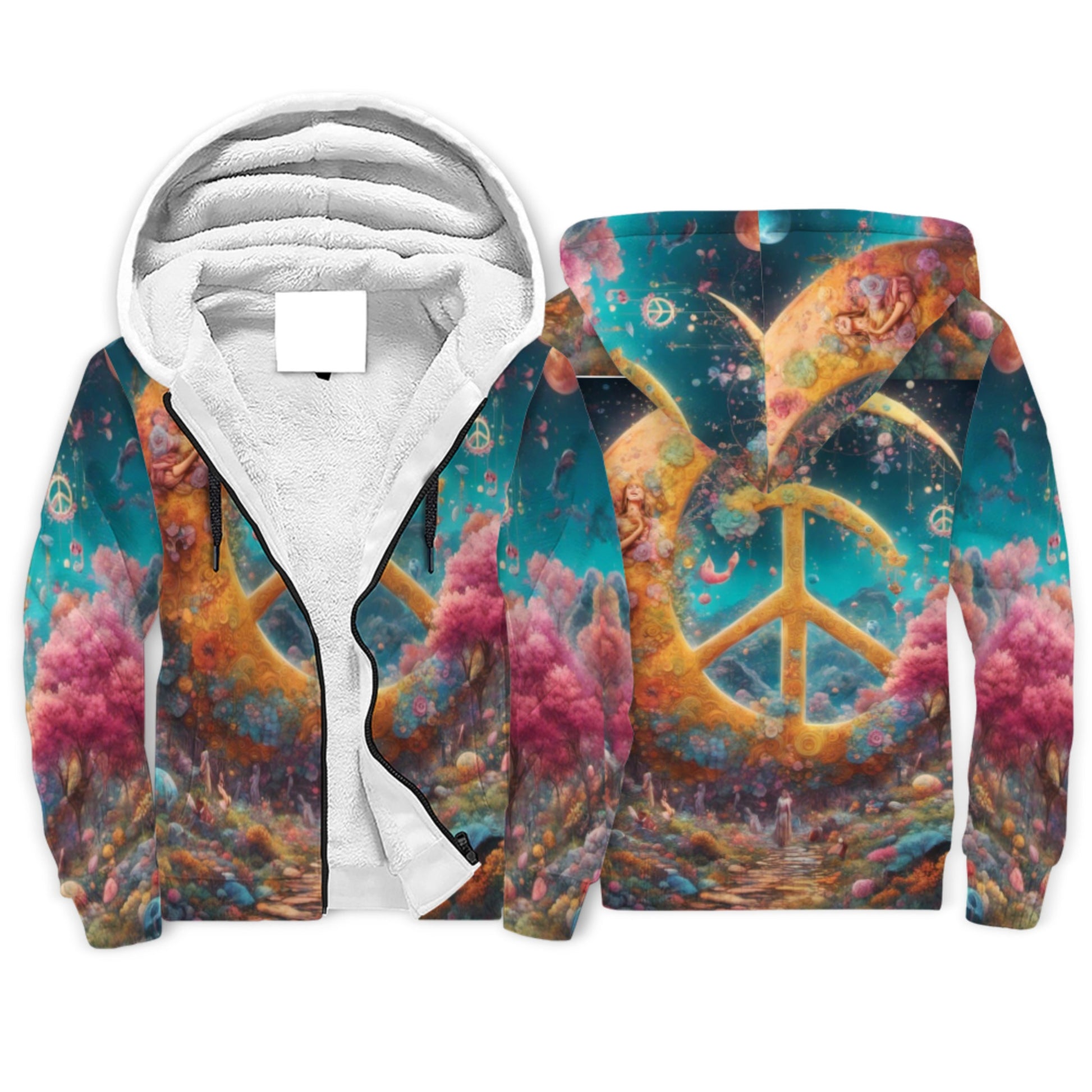 World Of Peace Sherpa Lined Zip-up Hoodie For Hippies